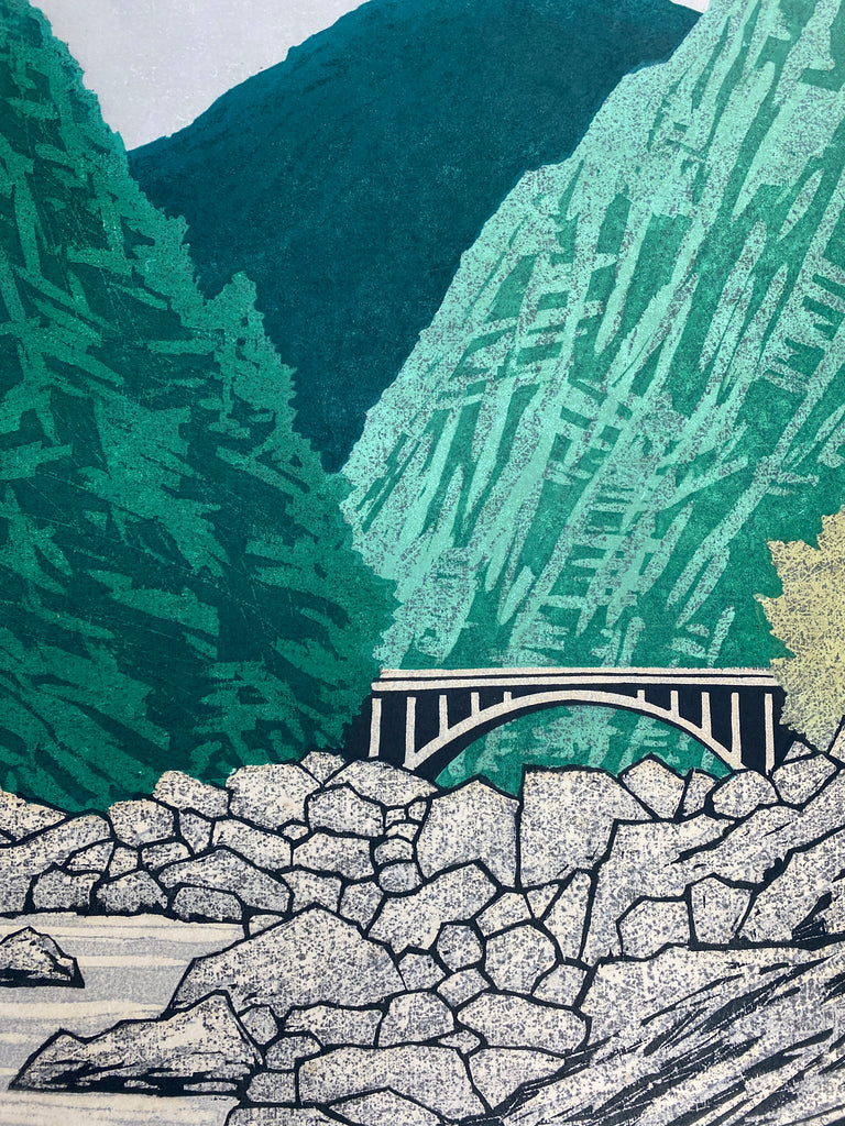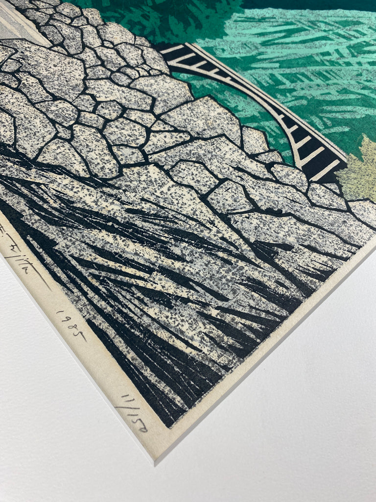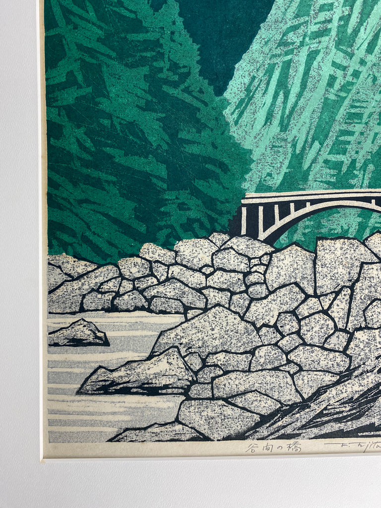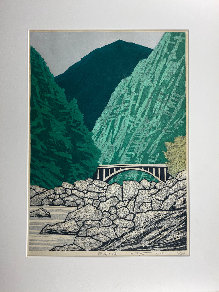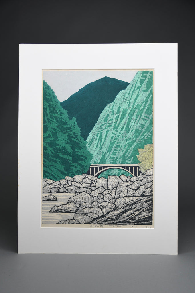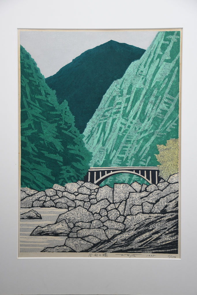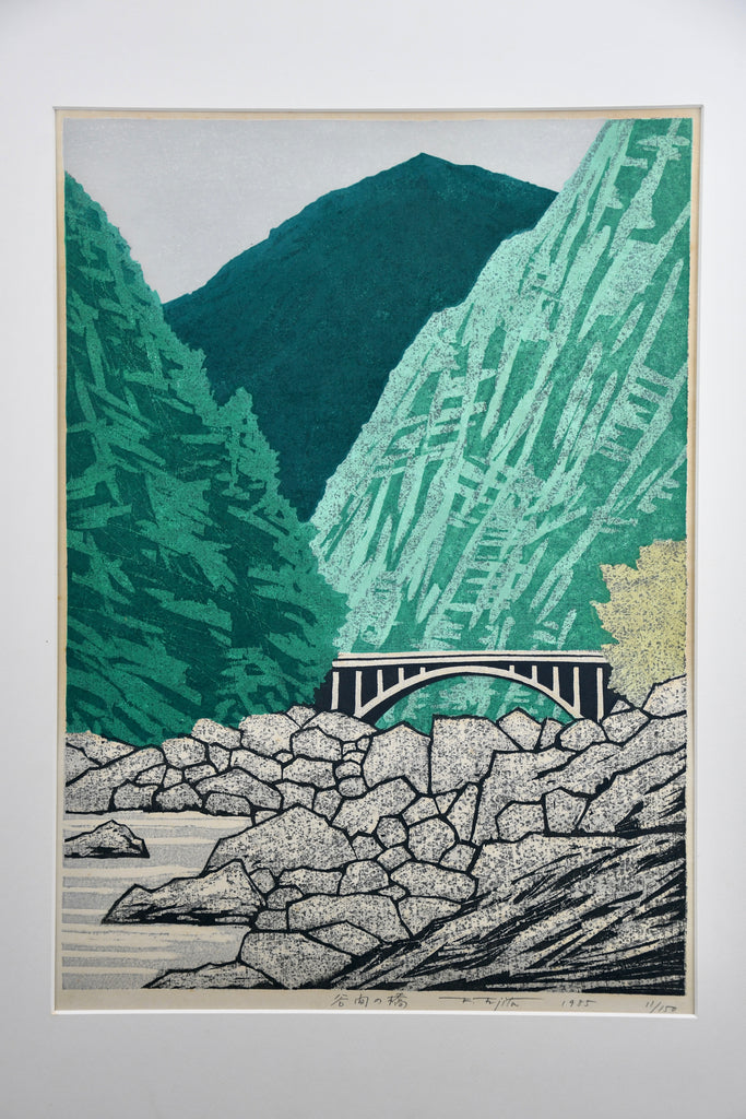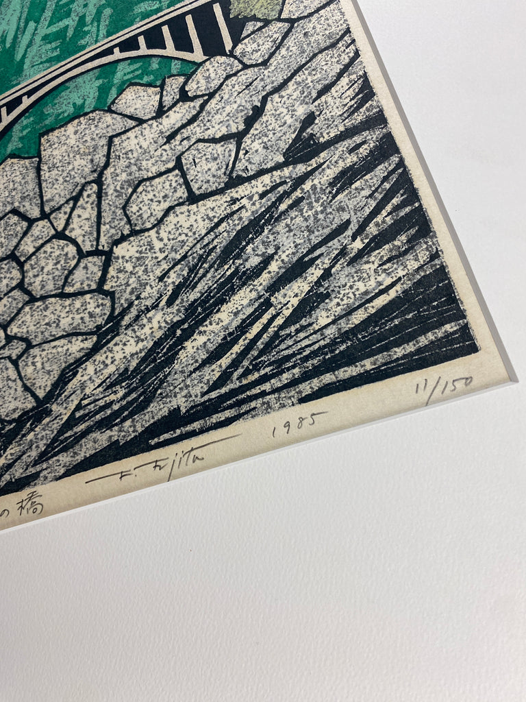 Bridge in the Valley — Limited Edition Japanese Woodblock Print by Fujita Fumio, 1985