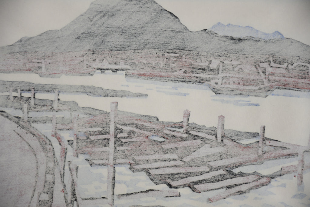 A beautifully composed and culturally rich example of modern Japanese woodblock art, embodying both the timeless landscape tradition and the poetic philosophy of wabi-sabi.