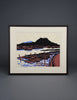 “Mount Bizan” limited edition Japanese woodblock print by Saburō Miyata — framed Shin-Hanga landscape with Wabi-Sabi character