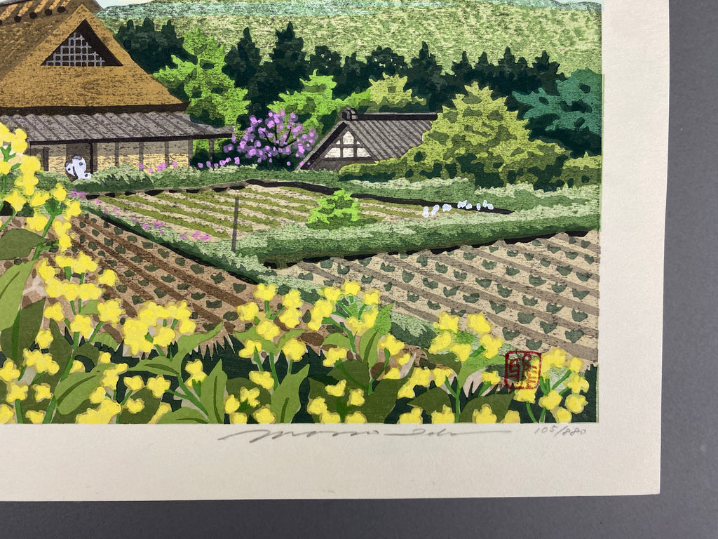 'Rape Blossoms" traditional Japanese woodblock print by Masao Ido