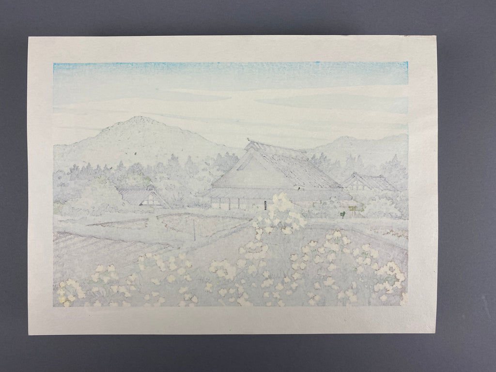 Collectors will appreciate the rarity of a signed and numbered impression from Ido’s mature period, with its subtle layering of color and precise registration. This piece would make a superb addition to any collection of contemporary Japanese prints or moku hanga (木版画). Its modest dimensions belie the depth of atmosphere and meditation embedded within.