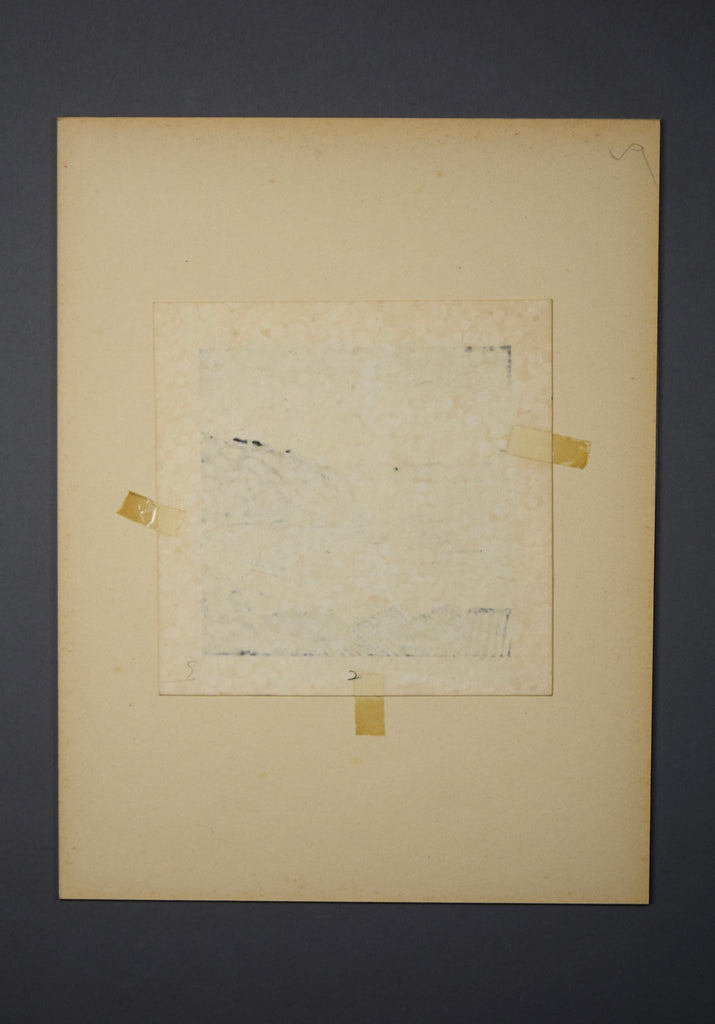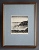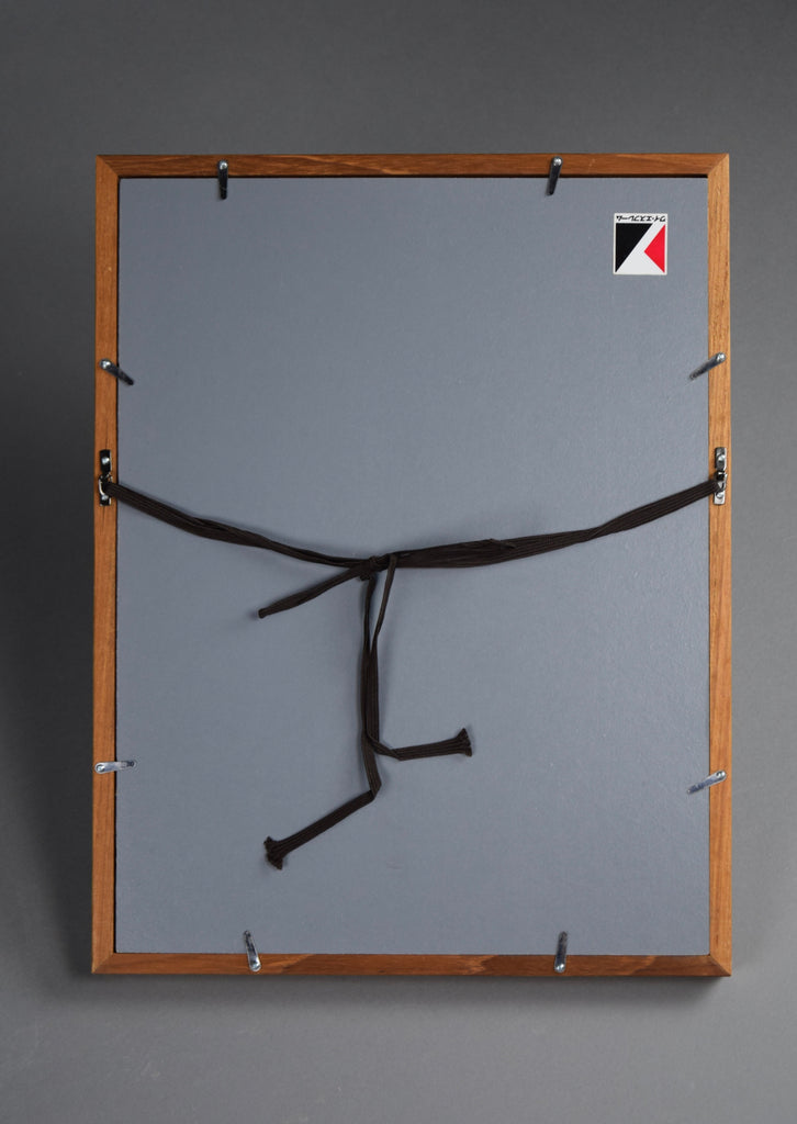 The work is presented in its original wooden frame with light blue mat, harmonizing beautifully with the print’s tones. It comes with its original packaging, underscoring its careful preservation.