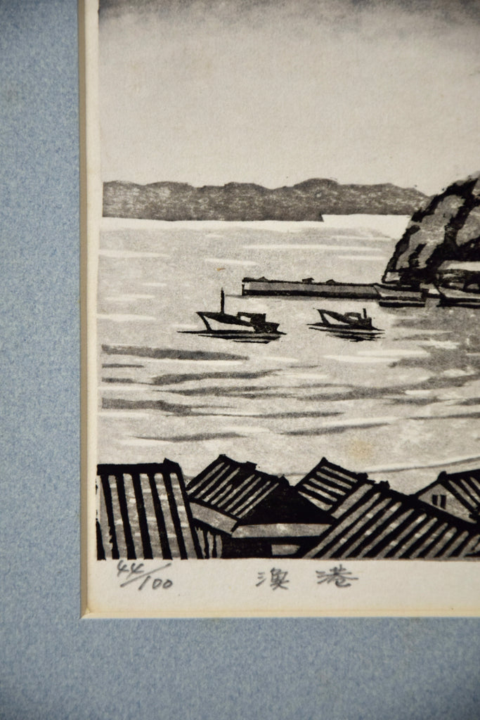 Traditional Japanese Woodblock Print of Ine Fishing Village by T. Sugano, 1988 — Signed & Numbered 44/100