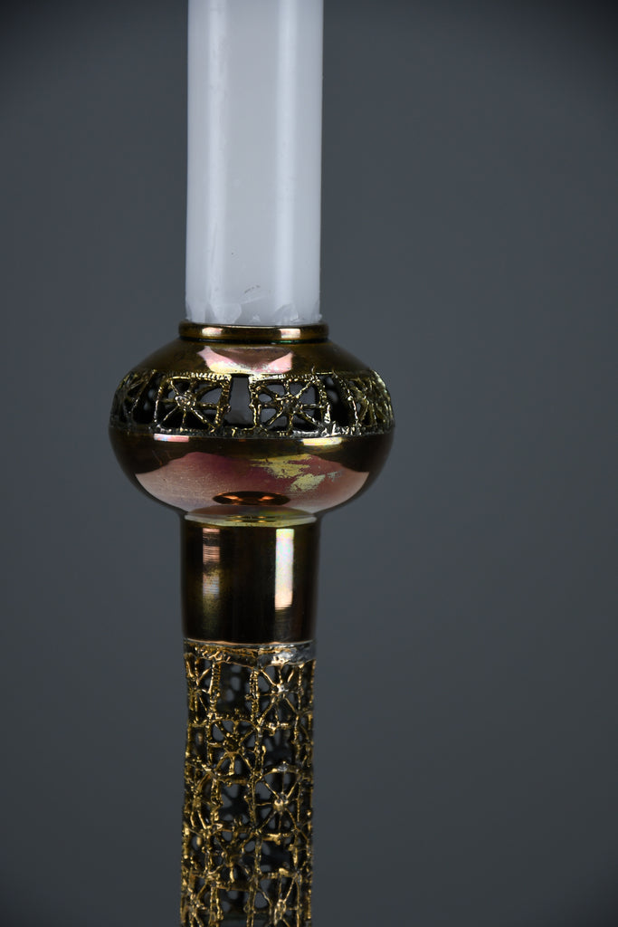 One shorter candlestick: H 10 cm x D 7 cm (3.9 in x 2.8 in)