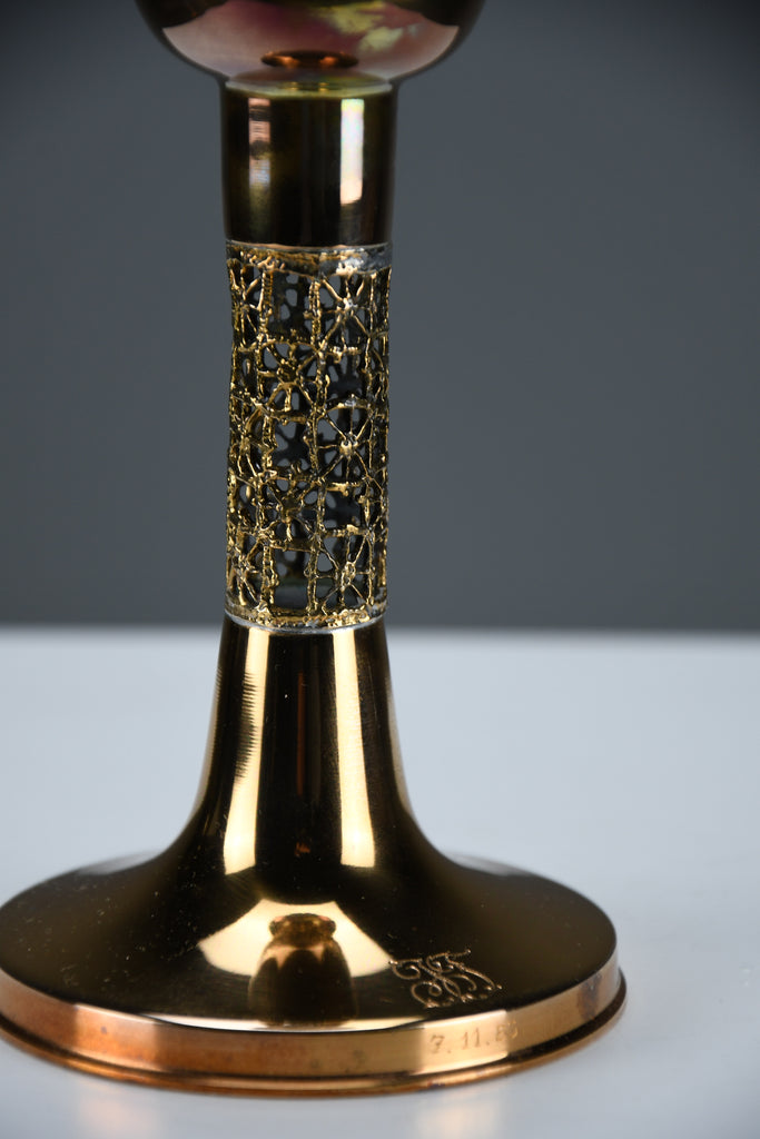 Each candlestick features Sarpaneva’s signature pitsi filigree pattern — a refined, lace-like openwork that gives the pieces both lightness and sculptural depth. The warm copper tone, combined with the intricate detailing, reflects the very best of Finnish modernist design from this era.
