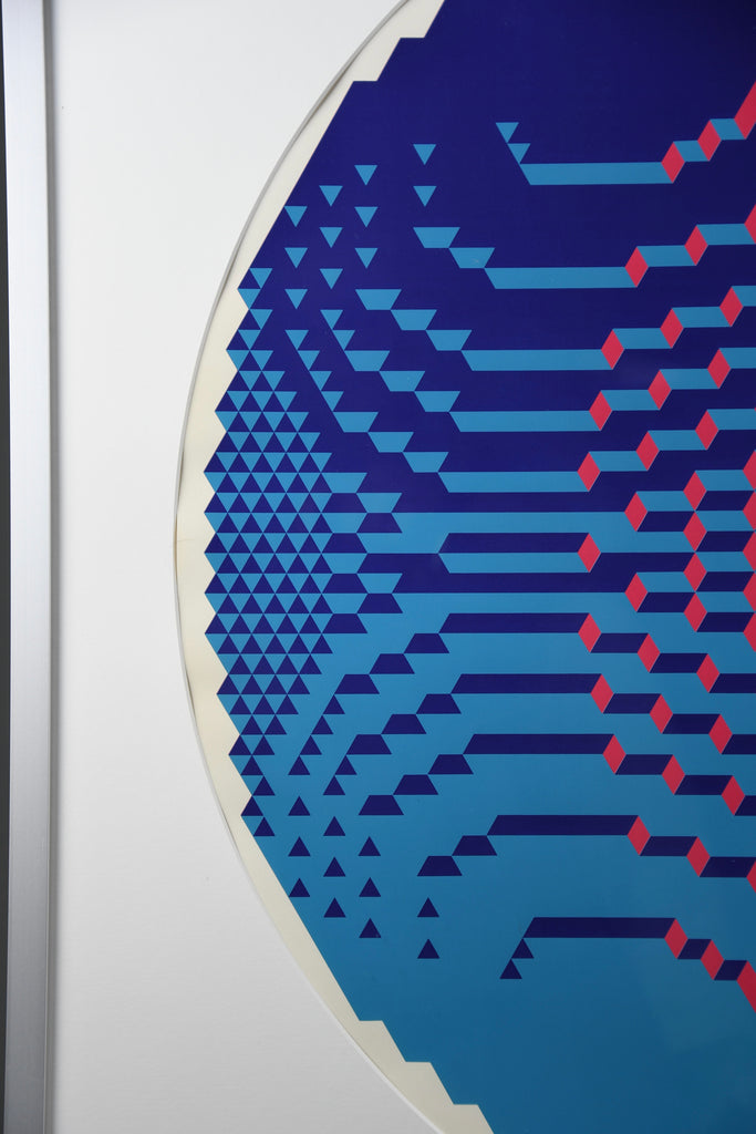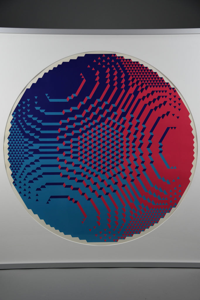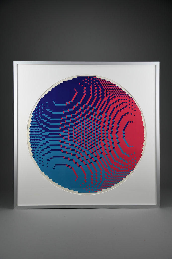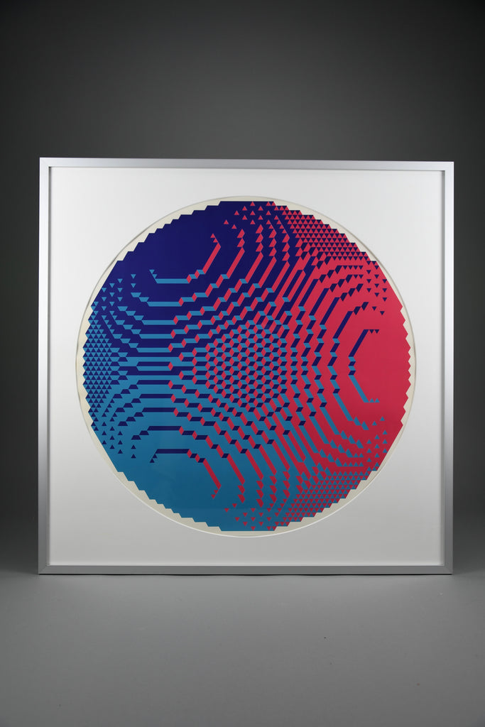 This piece exemplifies their iconic aesthetic: mathematically precise, optically dynamic, and deeply modern. Works by the duo are held in major museum collections, including the Stedelijk Museum Amsterdam and the MoMA in New York.