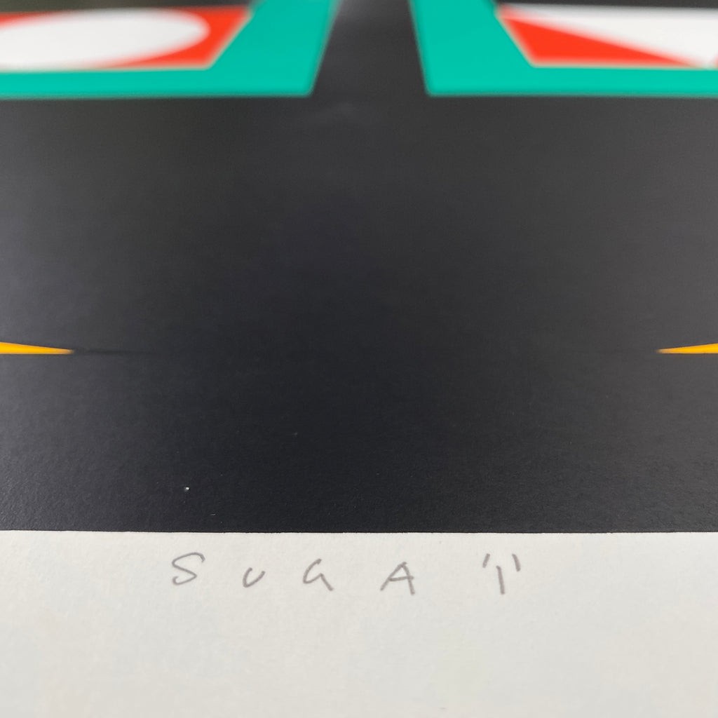 Kumi Sugai was a Japanese painter. Best known for his Minimalist and Hard Edge geometric abstractions, Sugai was influenced by the relationships between Japanese calligraphy and Western typography. His paintings often featured a singular, centrally placed shape and a highly graphic aesthetic. Born in Kobe, Japan on March 13, 1919, he developed an interest in art at a young age, initially enrolling at the Osaka School of Fine Arts in 1933 and later dropping out to work in commercial advertising during the Second World War. By 1952, Sugai settled in Paris, where he studied at the Académie de la Grande Chaumiere and absorbed contemporary Western painting styles, including Abstract Expressionism and, later, Minimalism and Pop Art. At first, Sugai adopted traditional ukiyo-e woodblock techniques, using bright colors to create prints infused with avant-garde art influences. In the 1960s, however, he transitioned into painting and printing more geometric images of letters and directional signs. Before his death on May 14, 1996 in Kobe, Japan, Sugai achieved international success, participating in the Pittsburgh International five times between 1955 and 1970, and holding a major retrospective of his work at the Seibu Museum of Art in Tokyo in 1983.