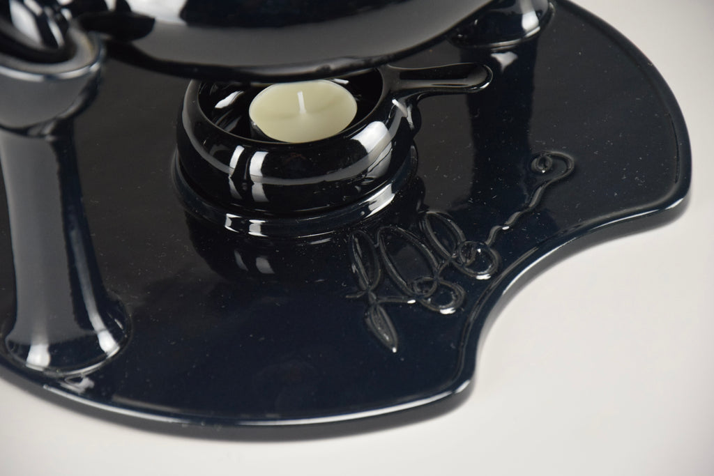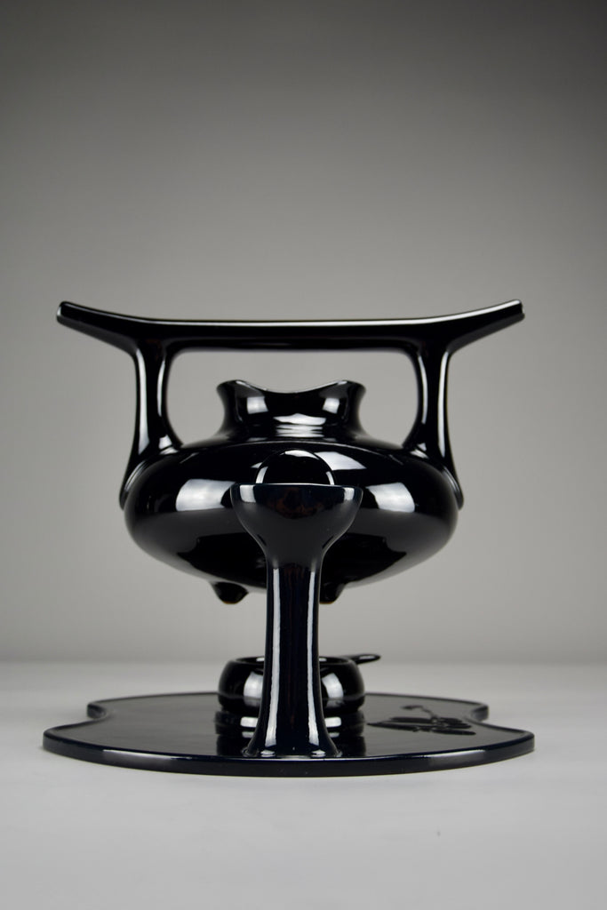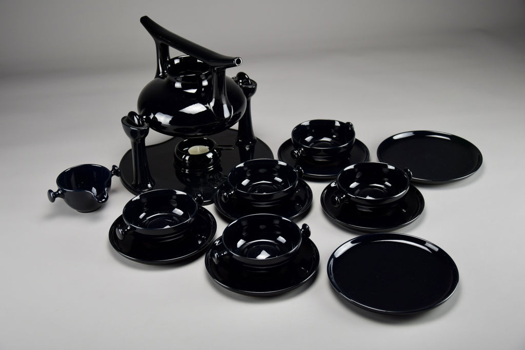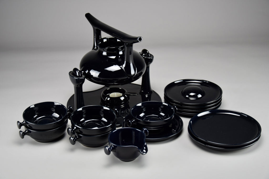 Immerse yourself in the tranquility and artistry of the late 1970s with the stunning 16-piece Zen tea set, designed by the legendary Luigi Colani and produced by Friesland Germany. This extraordinary set, while appearing black, is actually a deep, dark blue, showcasing Colani's ability to create designs that play with perception and color.