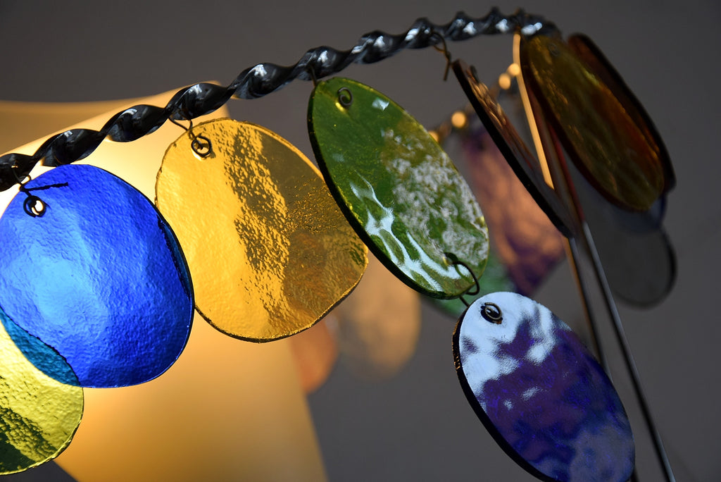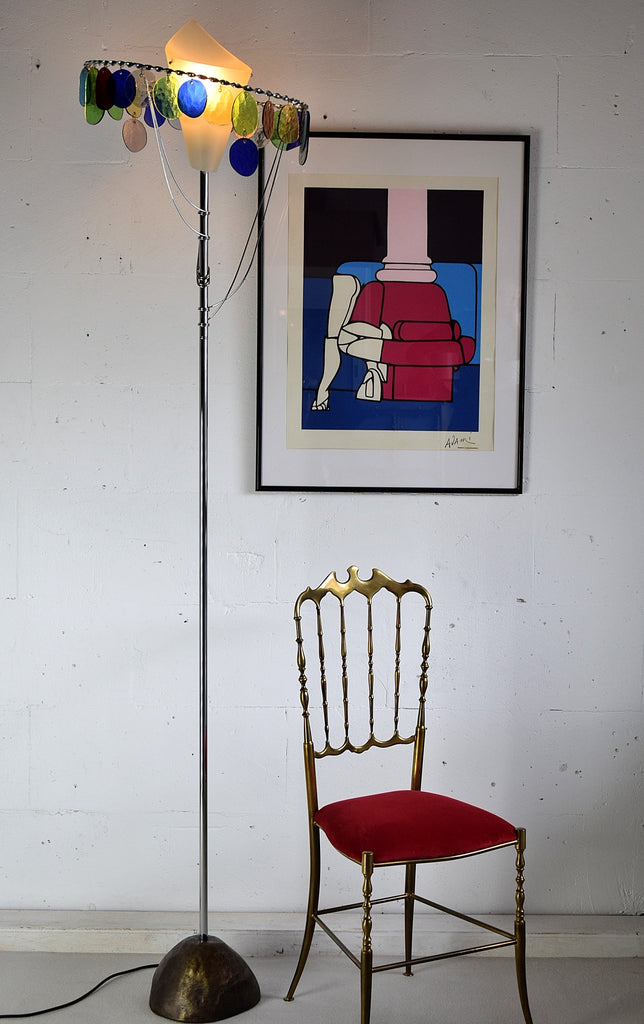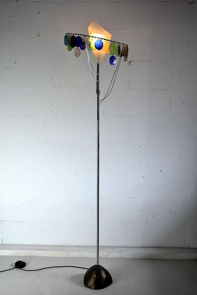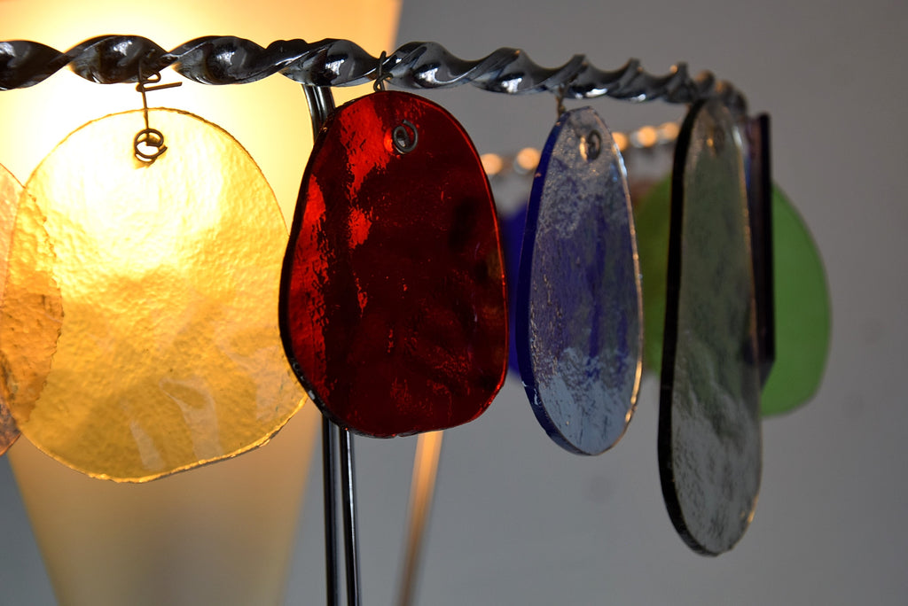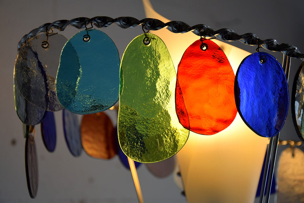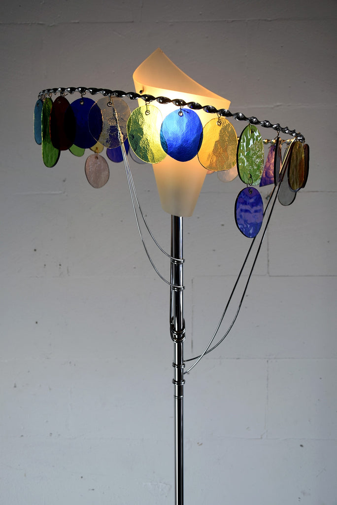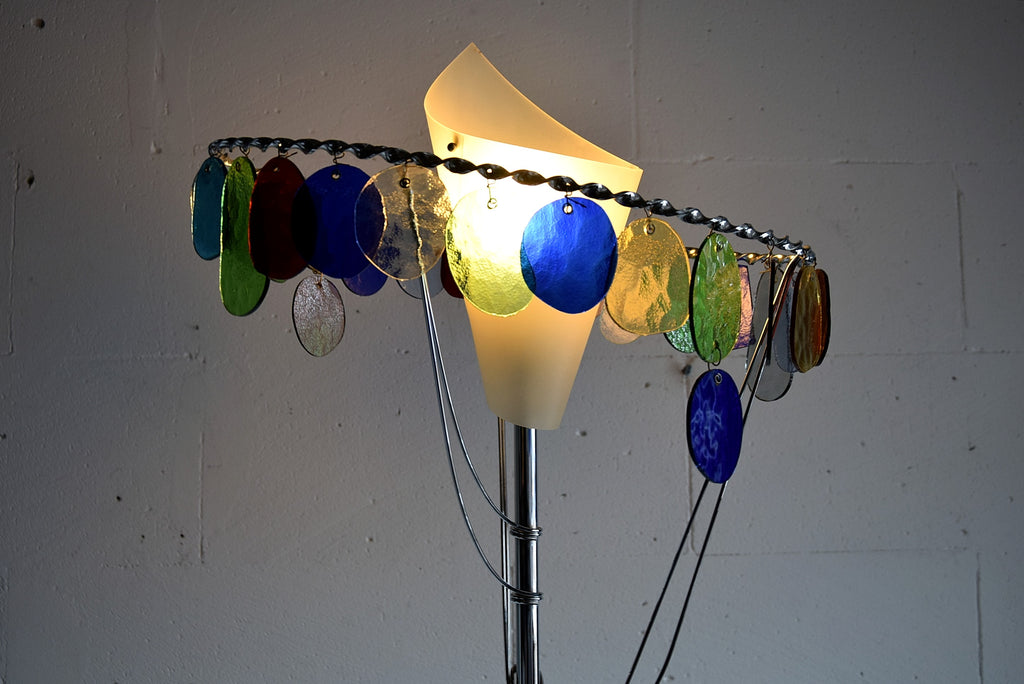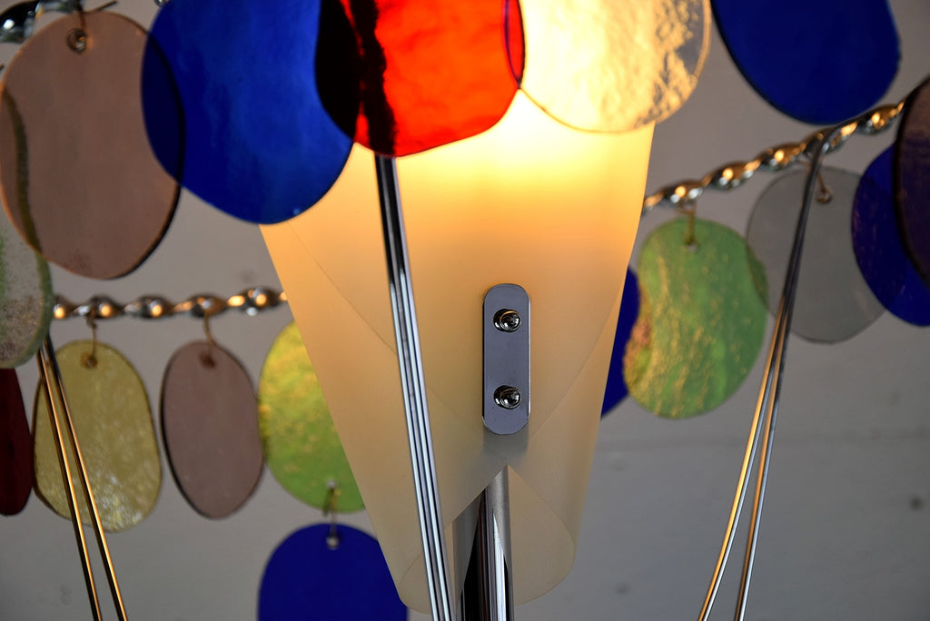 • Innovative Design: The lamp’s playful yet elegant silhouette is highlighted by colorful glass discs, which add a dynamic interplay of light and shadow to any room.