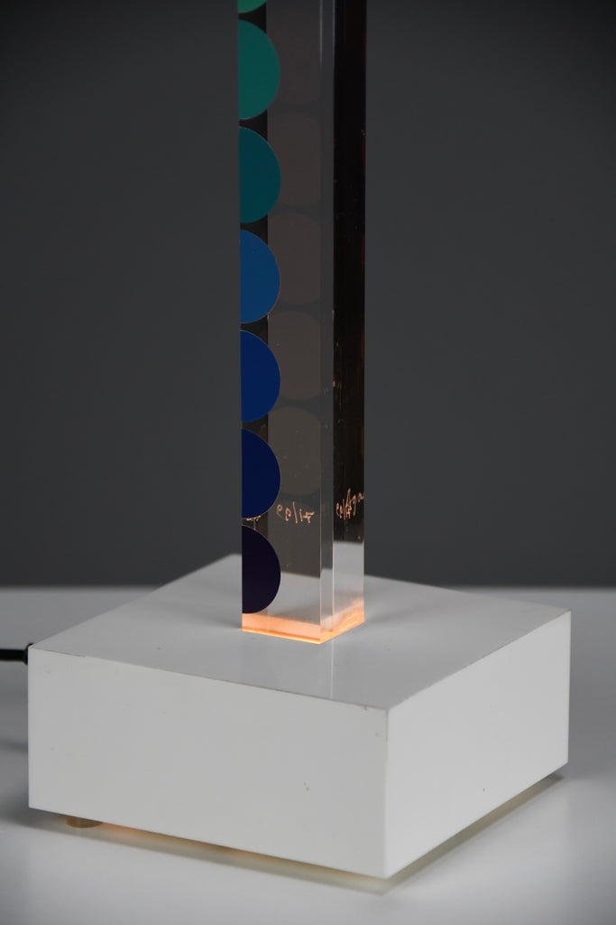 This light sculpture, with its clean lines and vibrant colors, is ready to illuminate and transform any space. Whether displayed in a home or office, "Image-Magic" by Yaacov Agam will captivate and inspire all who encounter it.