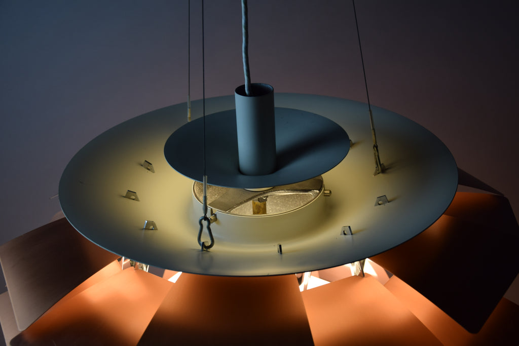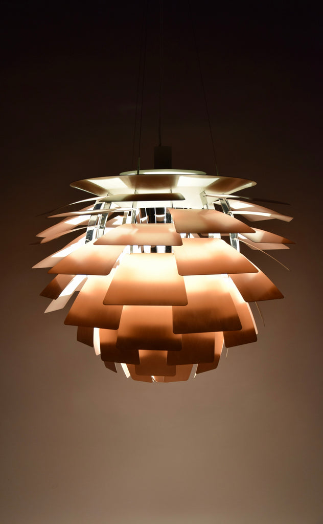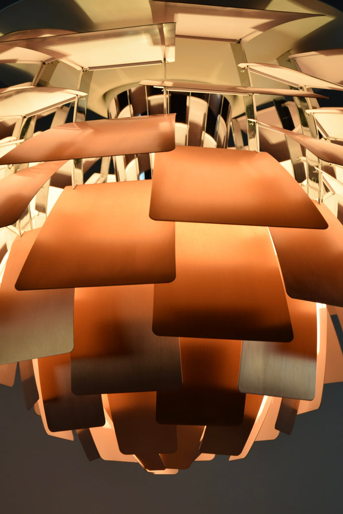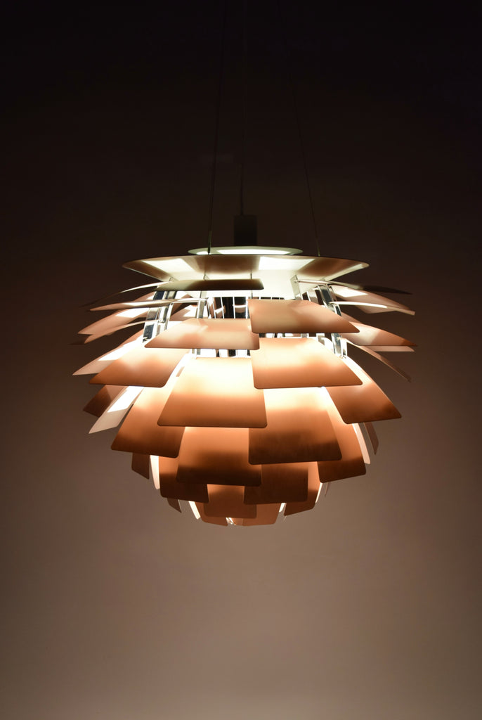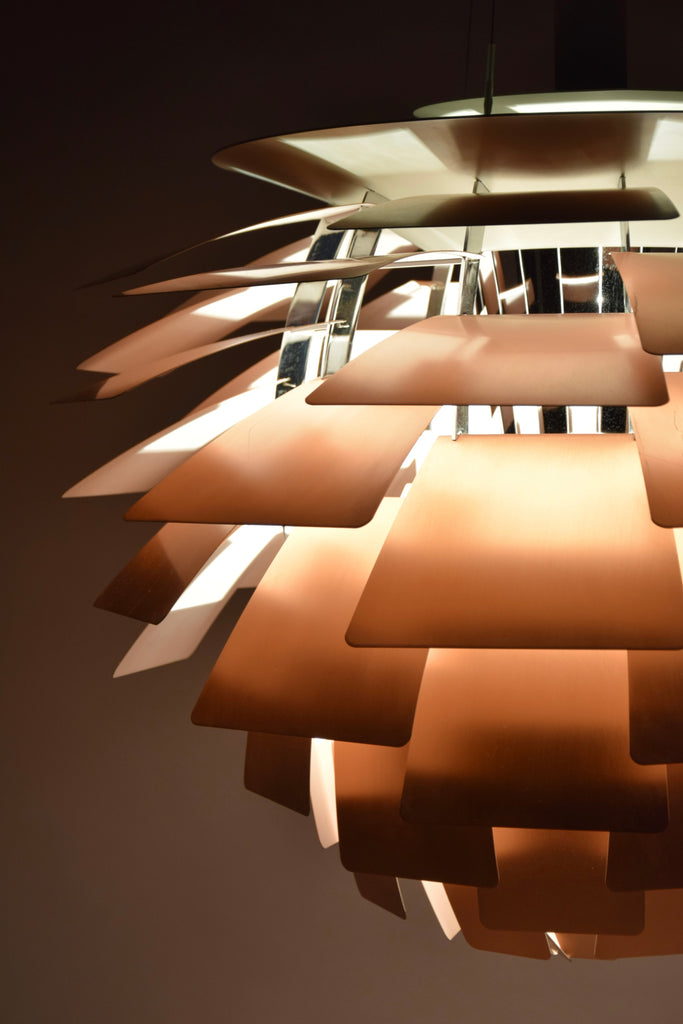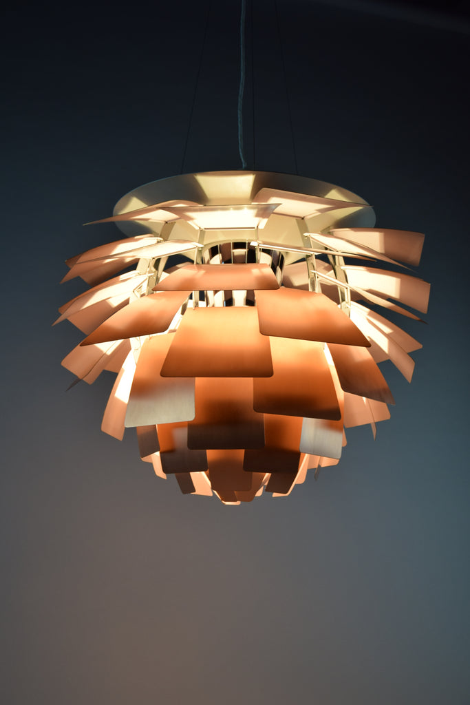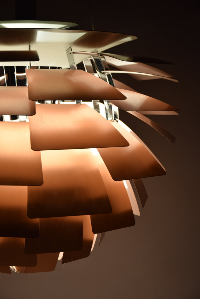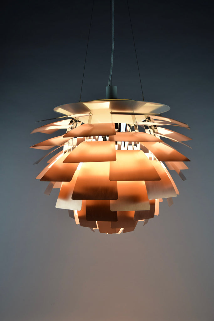 Crafted with precision and passion, each PH Artichoke pendant is a testament to the genius of Poul Henningsen's design philosophy. The brushed copper shades, meticulously staggered in twelve layers, create a mesmerizing interplay of light and shadow, casting a warm and inviting glow that transforms any space into a sanctuary of style and sophistication.