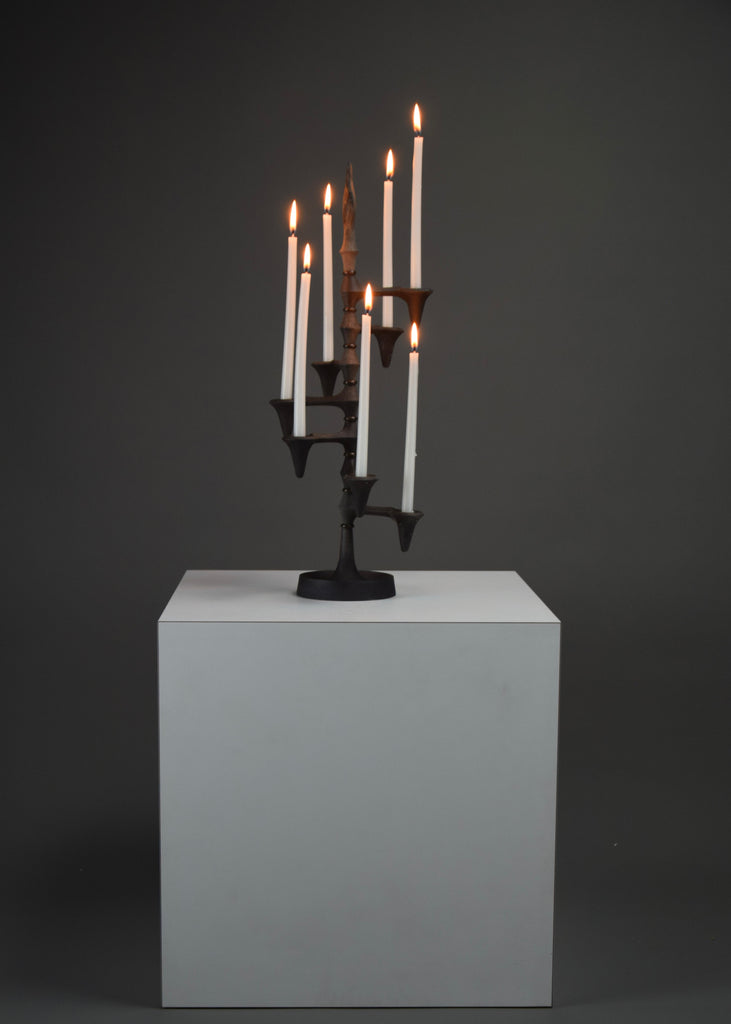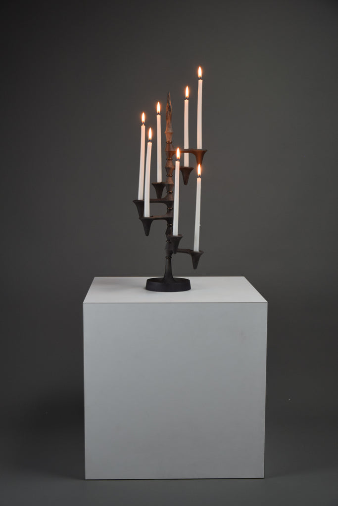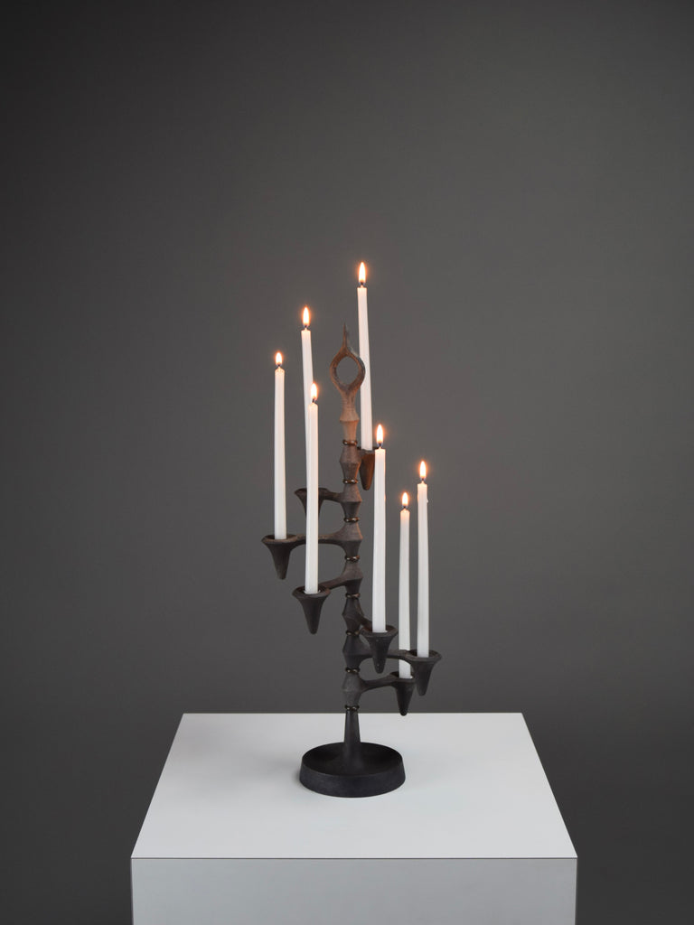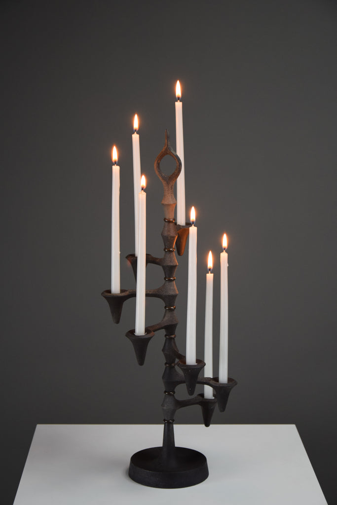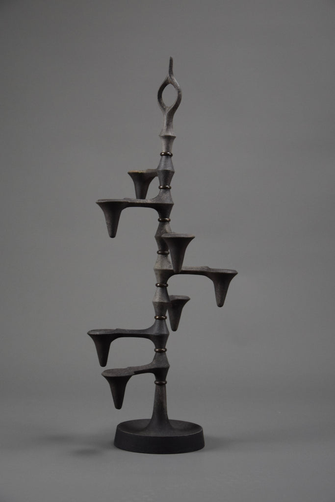 Jens QuistgaardStep into the timeless elegance of mid-century design with this exquisite 1960s Wrought Iron Tabletop Candleholder, designed by the legendary Jens Quistgaard for Dansk Designs, Denmark. This sculptural masterpiece boasts seven swivel arms, each adjustable to create your own unique lighting arrangement, perfect for setting a cozy, warm ambiance in any space. Crafted with meticulous attention to detail, the candleholder is marked on the bottom with Dansk Design Made in Denmark, a testament to its authenticity and quality.