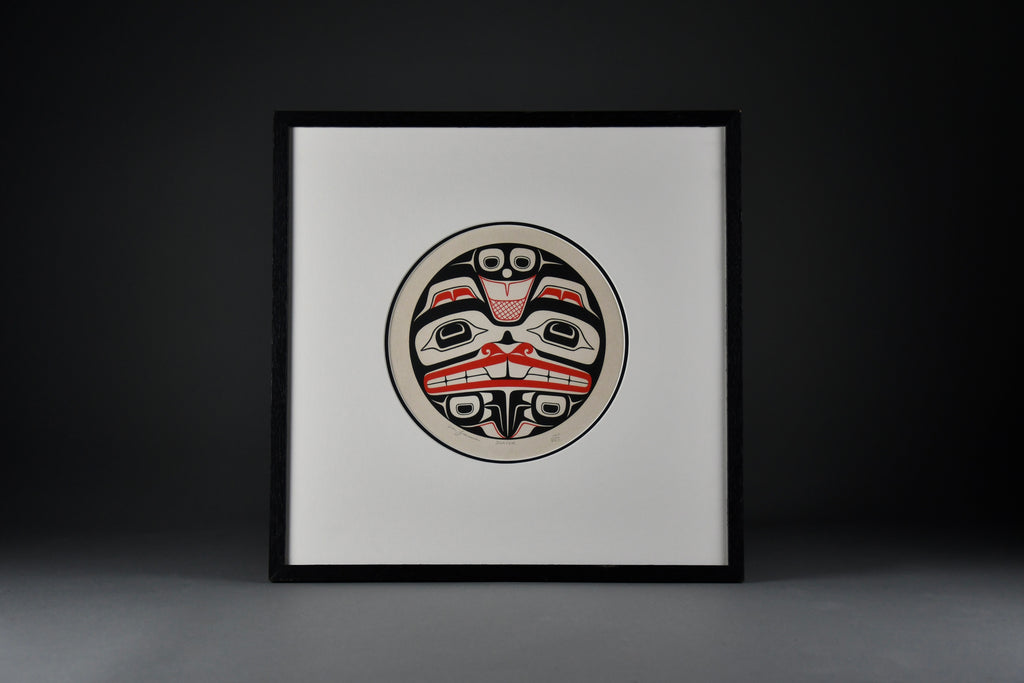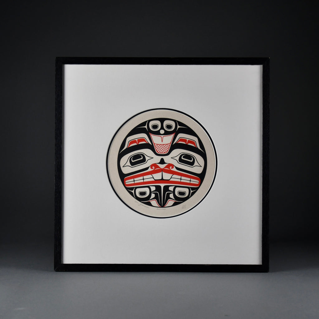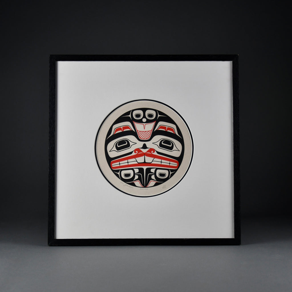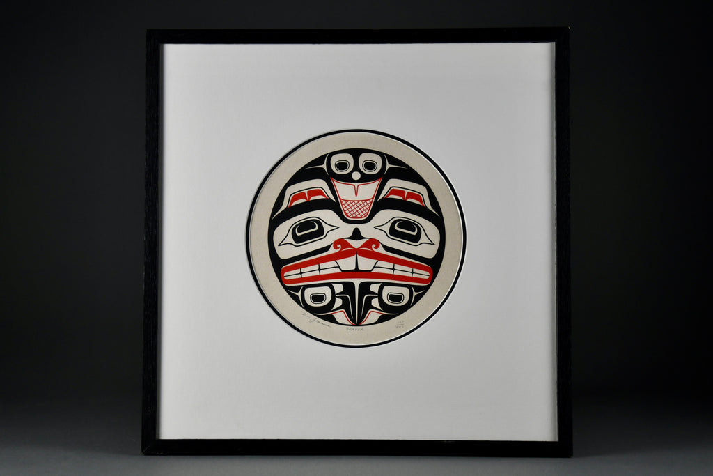 This bold 1980 serigraph titled “Beaver” by master Haida artist Don Yeomans is a stunning example of Northwest Coast graphic tradition. With its powerful lines, stylized formline structure, and symbolic richness, this limited edition work reflects the essence of Haida storytelling and visual language.