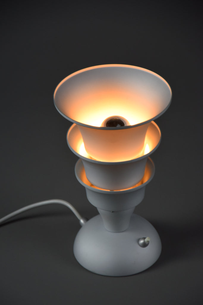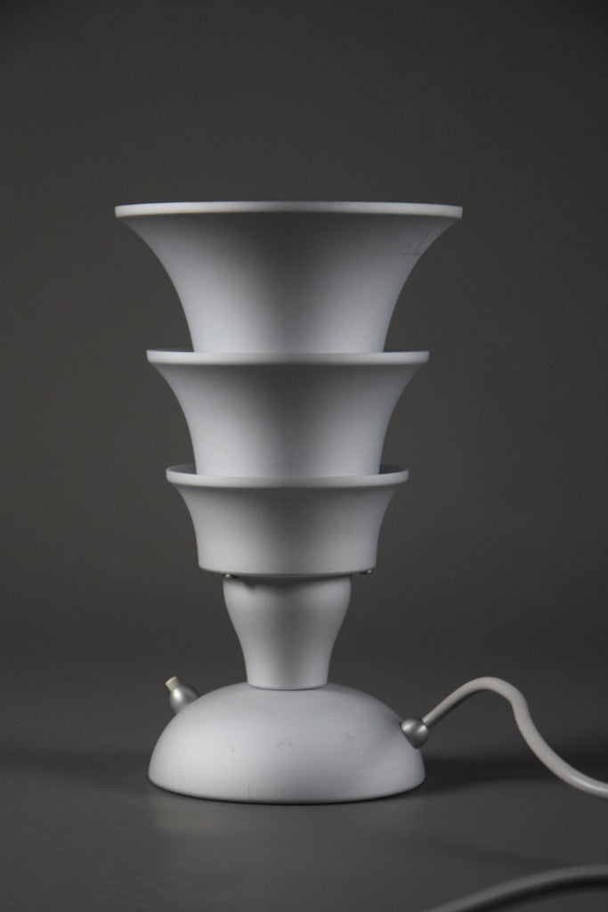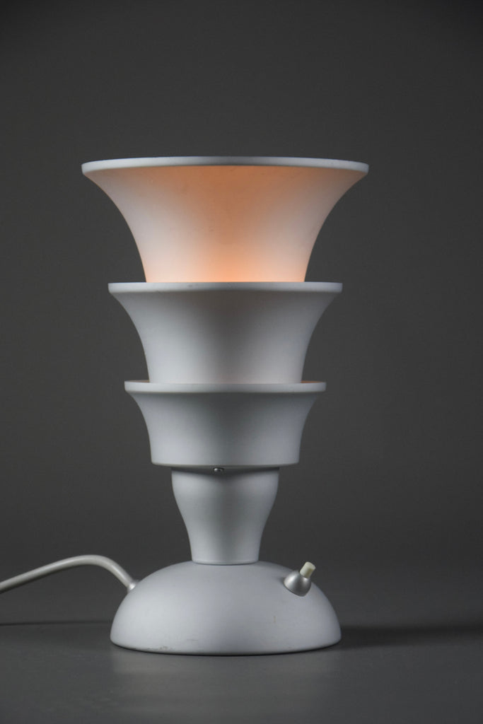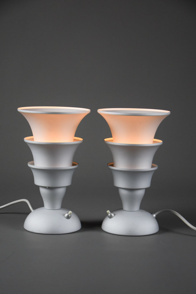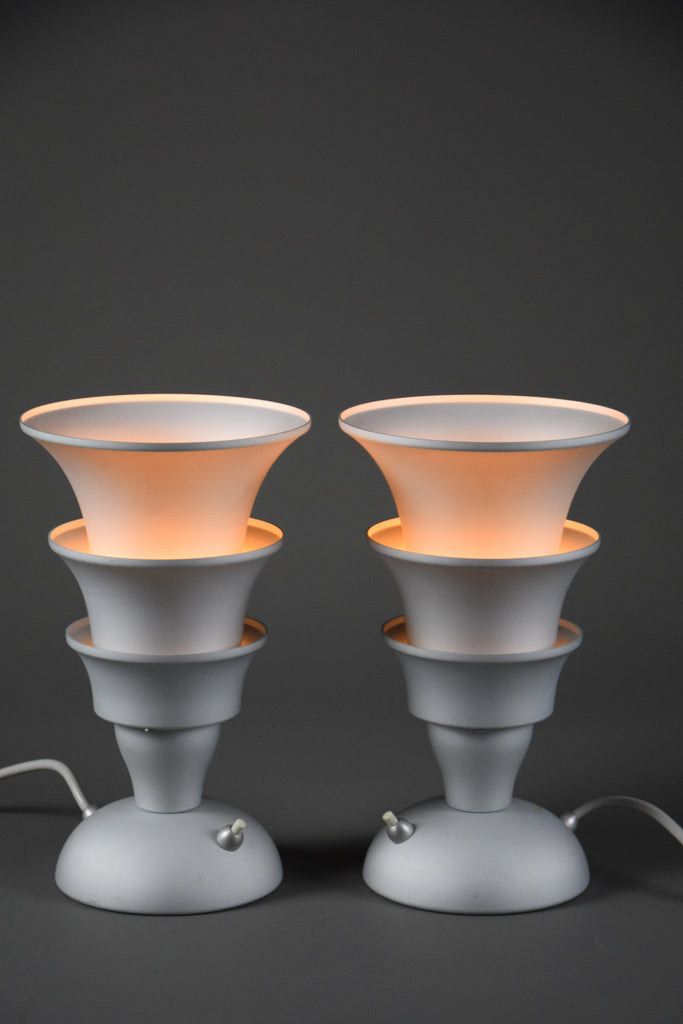 Discover the allure of vintage sophistication with this exquisite pair of 1989 Hollywood table or bedside lamps, masterfully designed by the renowned Matteo Thun for the prestigious Italian lighting brand, Tronconi. These lamps, crafted from high-quality aluminum, capture the essence of classic Hollywood glamour, with a contemporary twist that makes them a perfect fit for any modern or vintage-inspired interior.