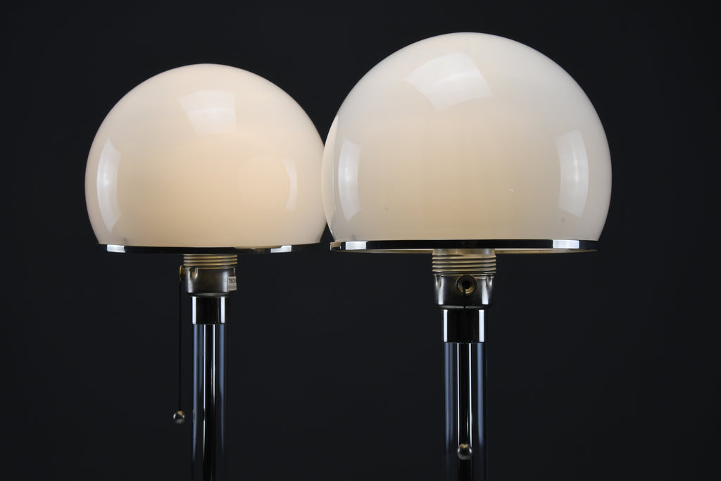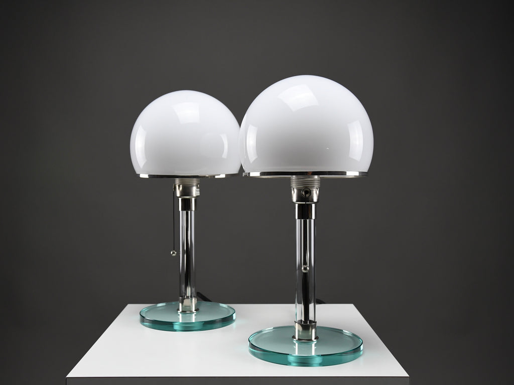 Iconic Pair of Bauhaus WG24 Table Lamps by Prof. Wilhelm Wagenfeld