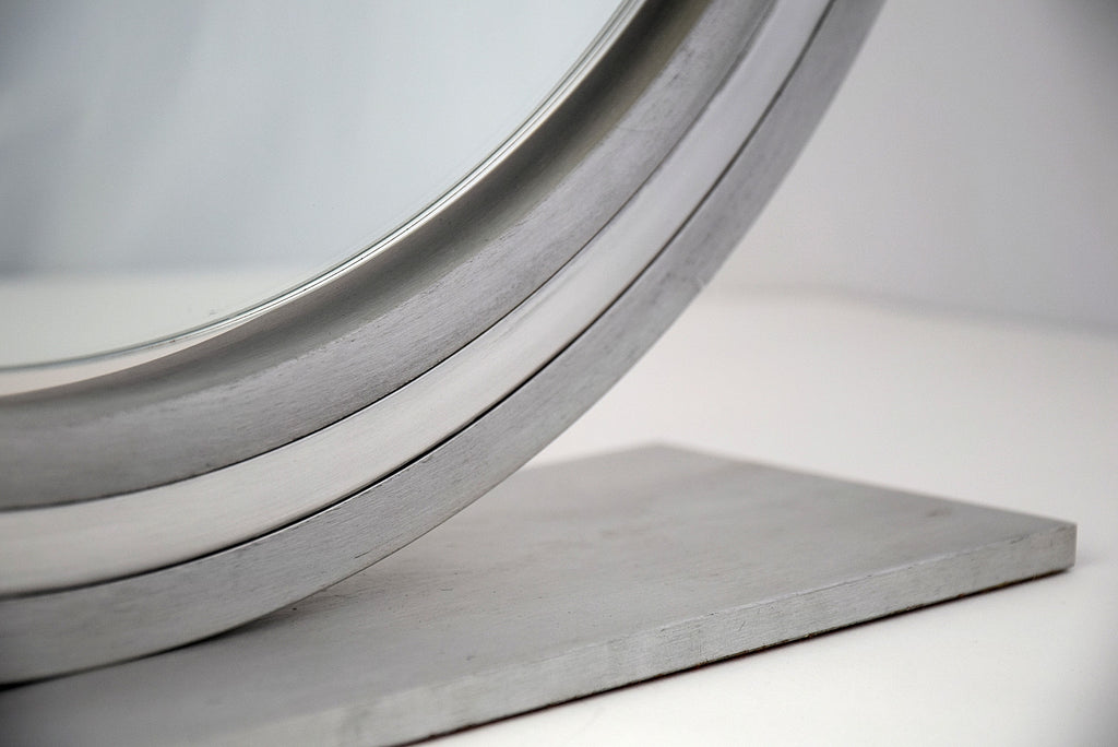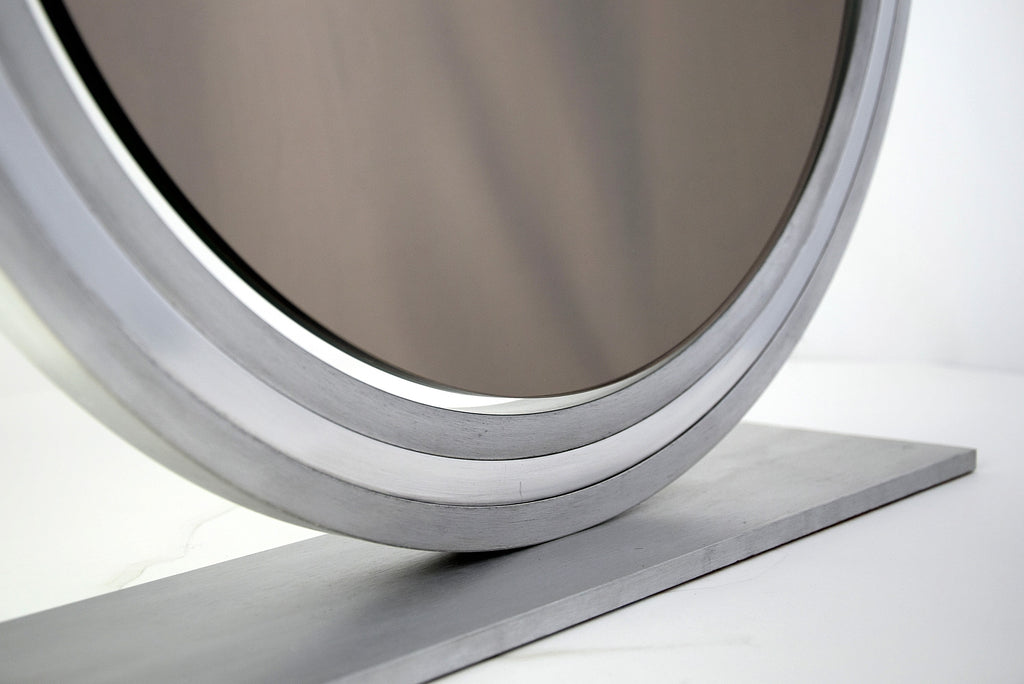 Constructed from brushed and polished aluminum, this mirror is not only durable but also adds a modern, industrial feel to your space.