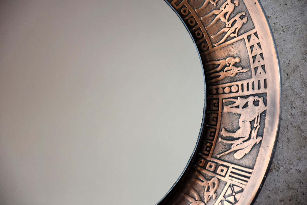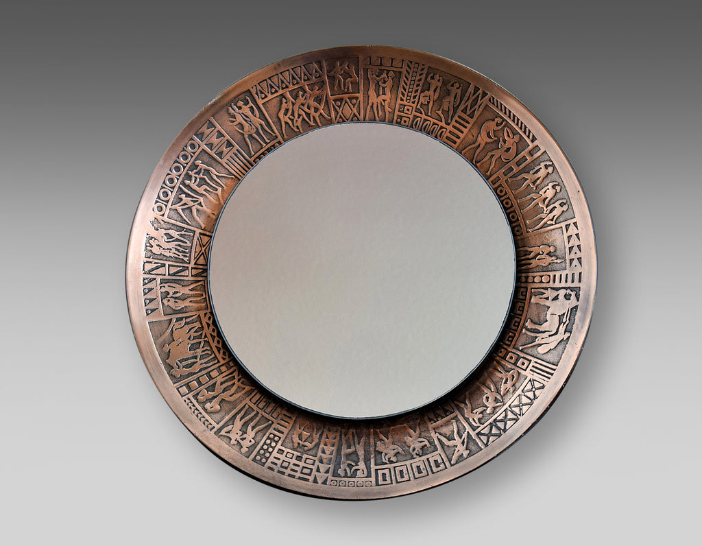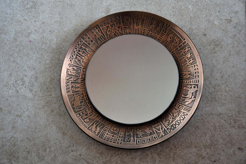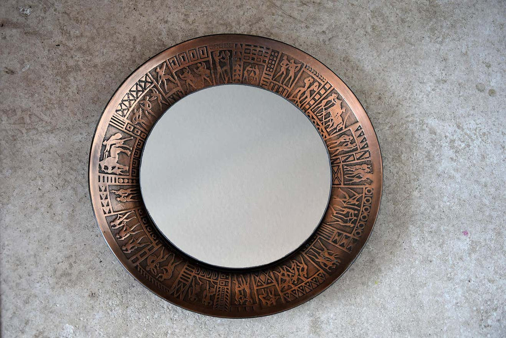 Italian Copper Mid-Century Modern Round Wall Mirror by M.Furgeri