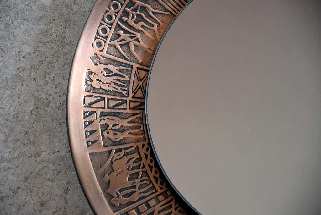 Step back in time with this exquisite mid-century modern round copper wall mirror, an authentic piece designed by the renowned Marco Furgeri in the 1960s. This mirror isn't just a reflection of your surroundings; it's a reflection of history and fine craftsmanship.