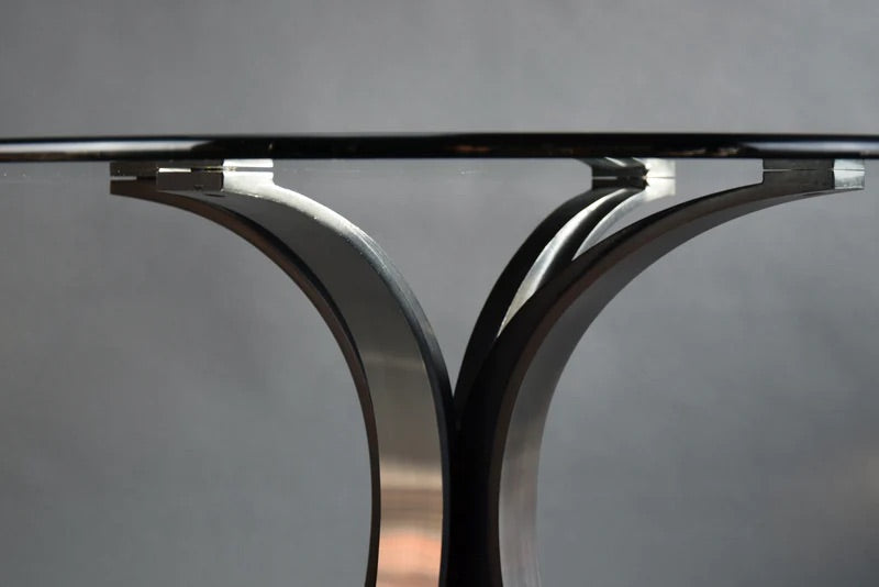 The T69 table exemplifies the synergy between form and function. Its cast aluminium base offers durability and a distinctive visual lightness, while the original glass top preserves its authentic character. Whether placed in a dining room, studio, or curated interior, it stands as a powerful example of 20th-century Italian design excellence.