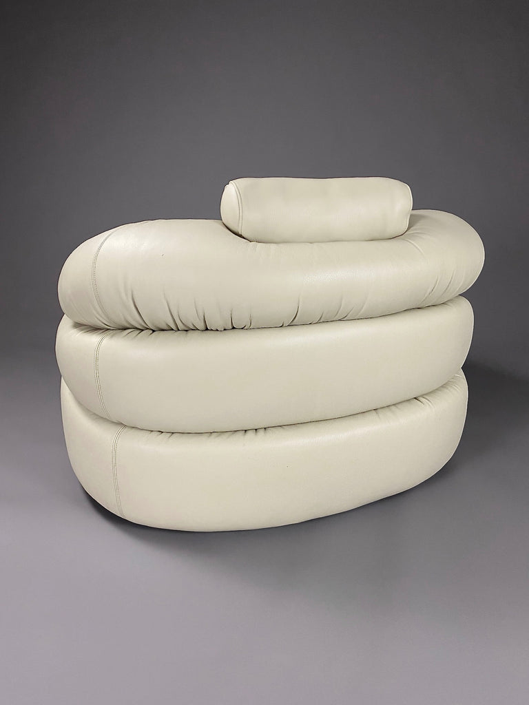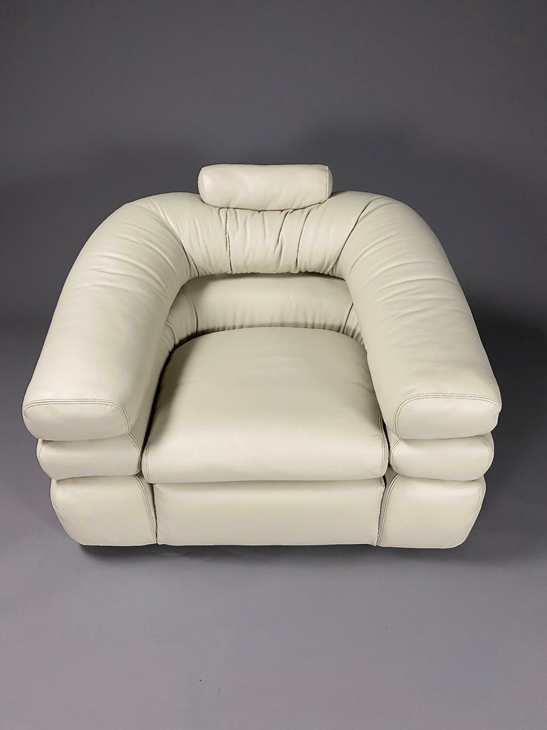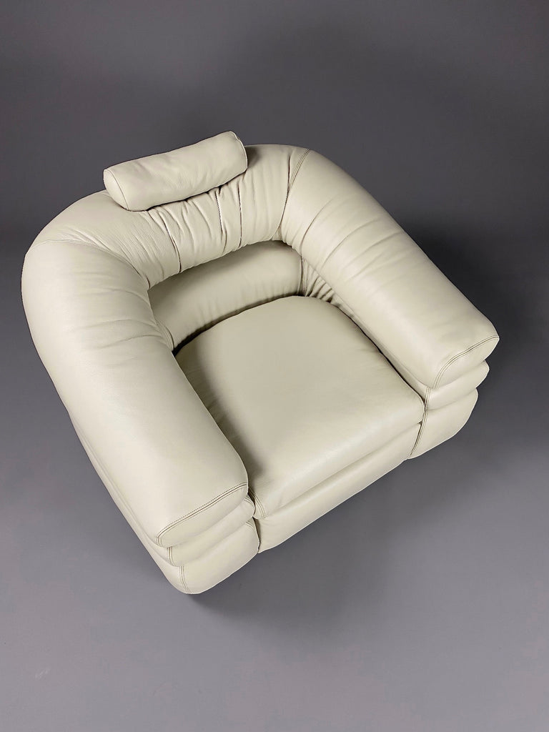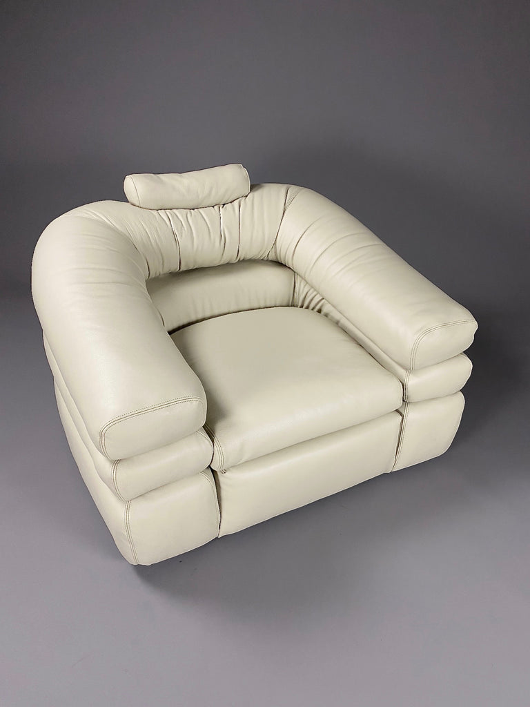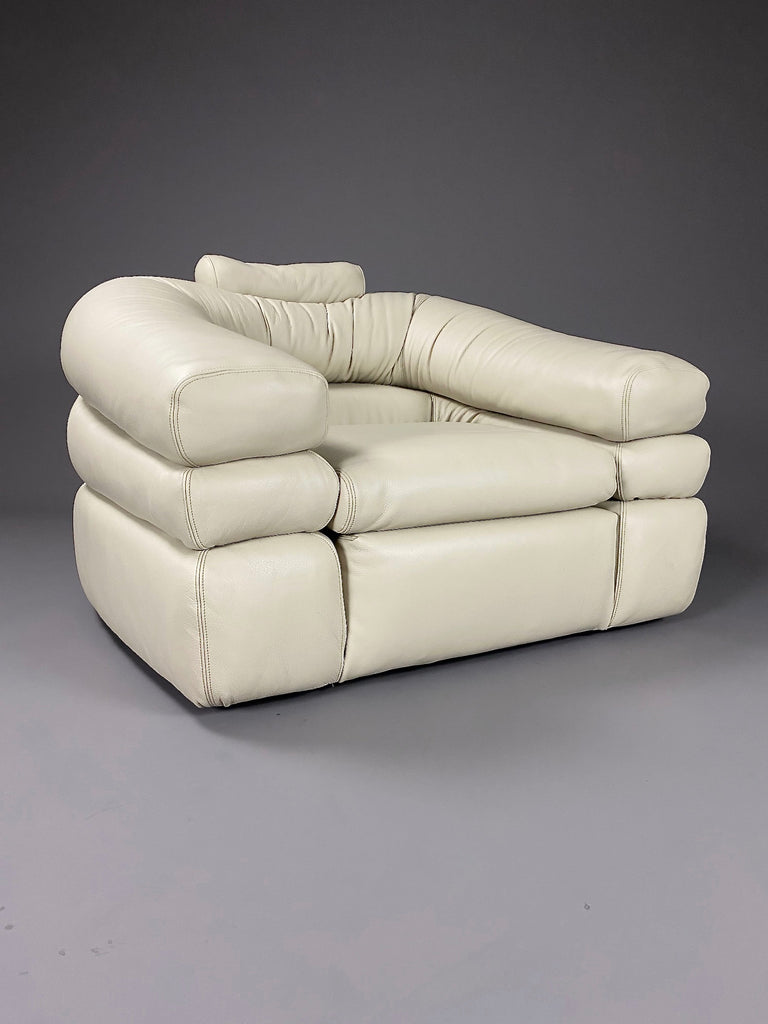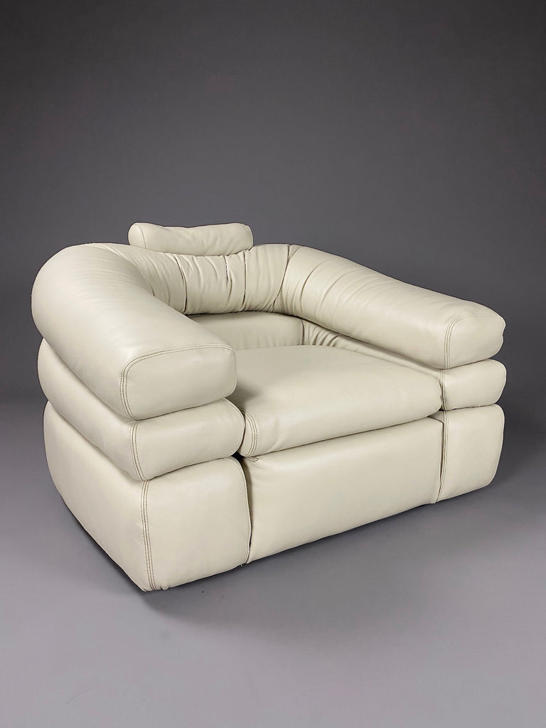 Ivory Leather Straccio Lounge Chair by Zanotta, Italy