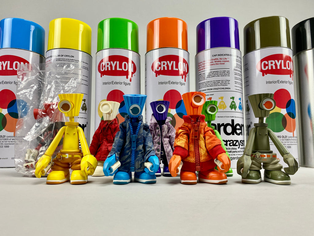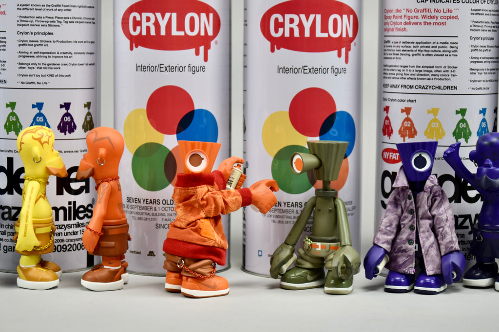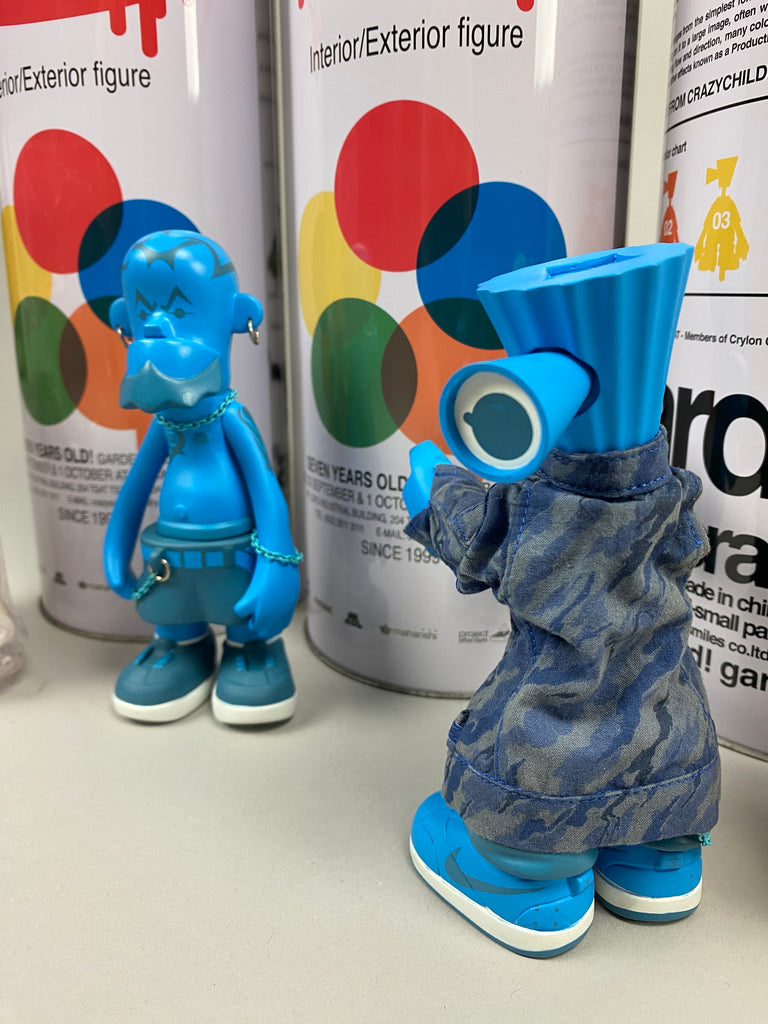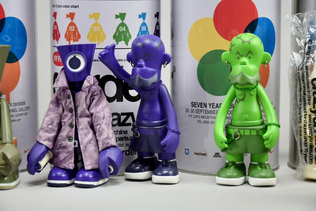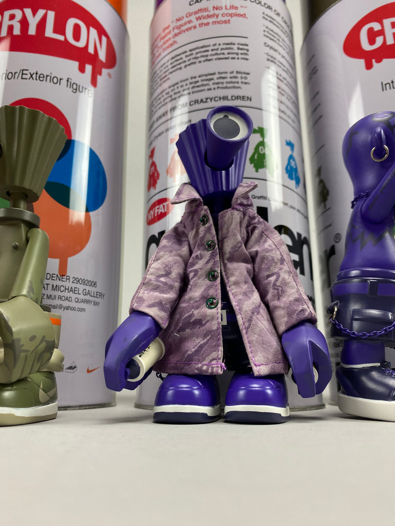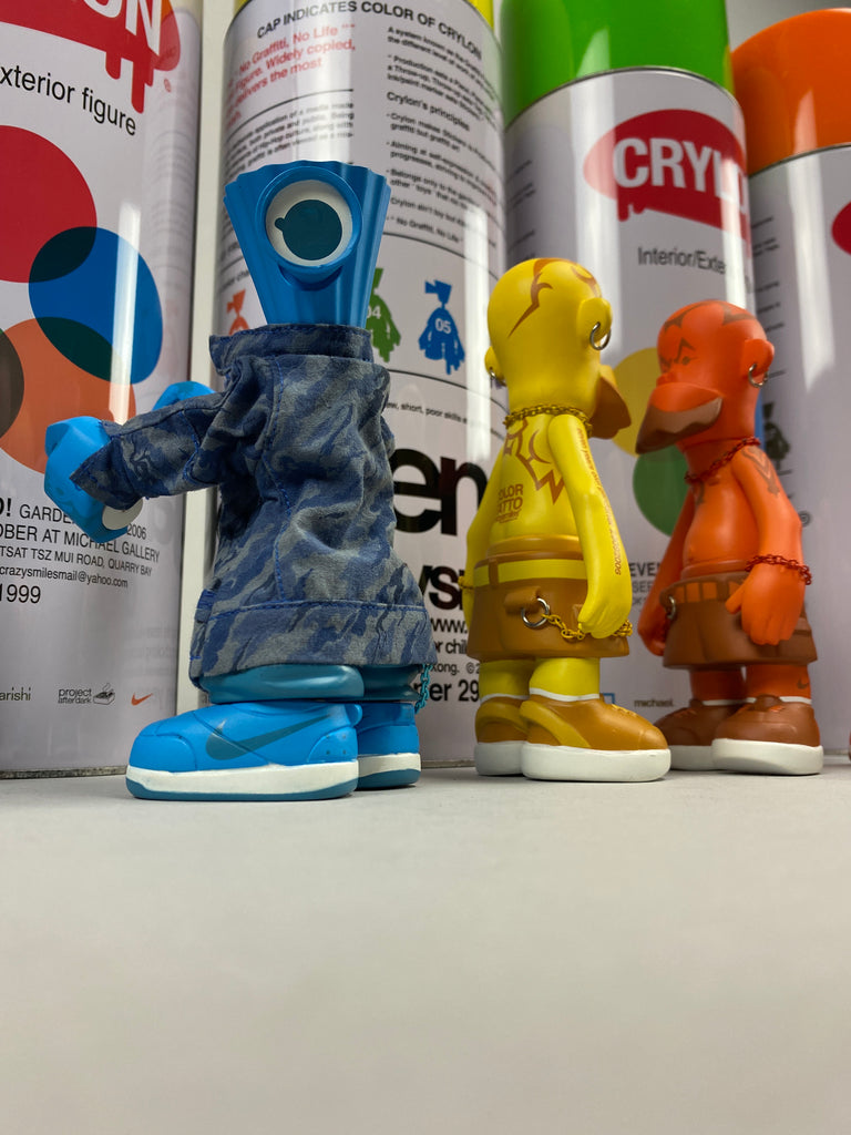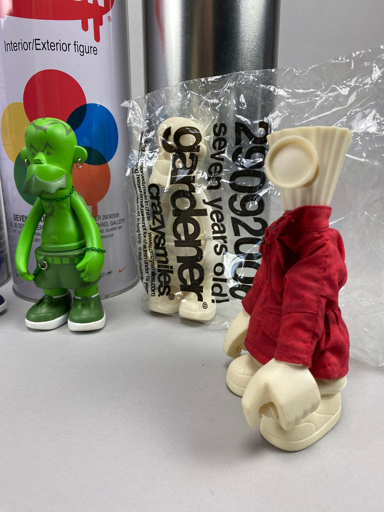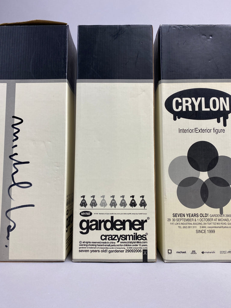 Each Crylon spray can is accompanied by its inner and outer box, meticulously preserved and some even signed by Michael Lau himself, the revered Godfather of designer toys. Within these boxes lie two figures, NYFat and Tatto, exquisitely crafted in the same color as the graffiti can they inhabit. Some figures and their accessories remain sealed in their original plastic bags, adding to the pristine condition of this magnificent collection.