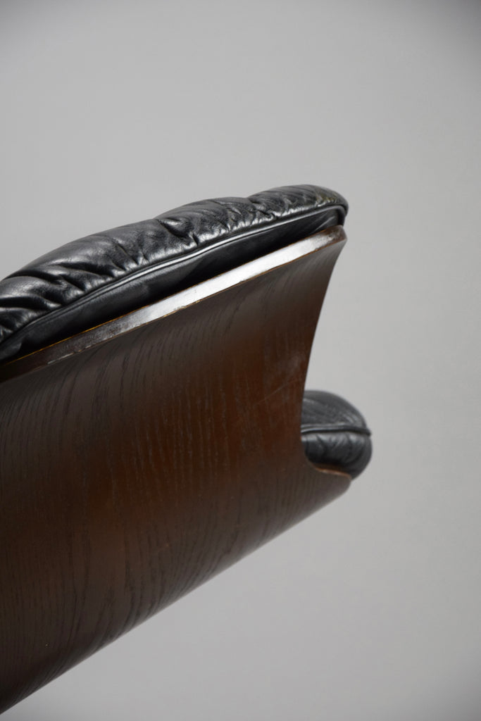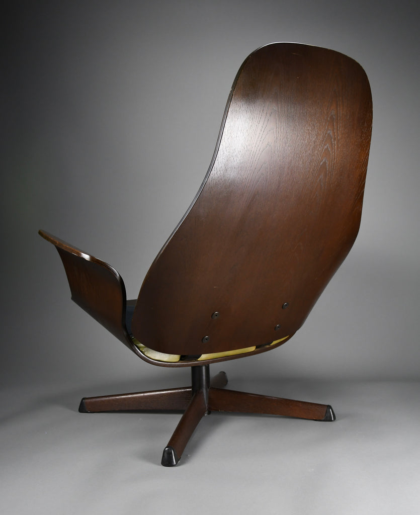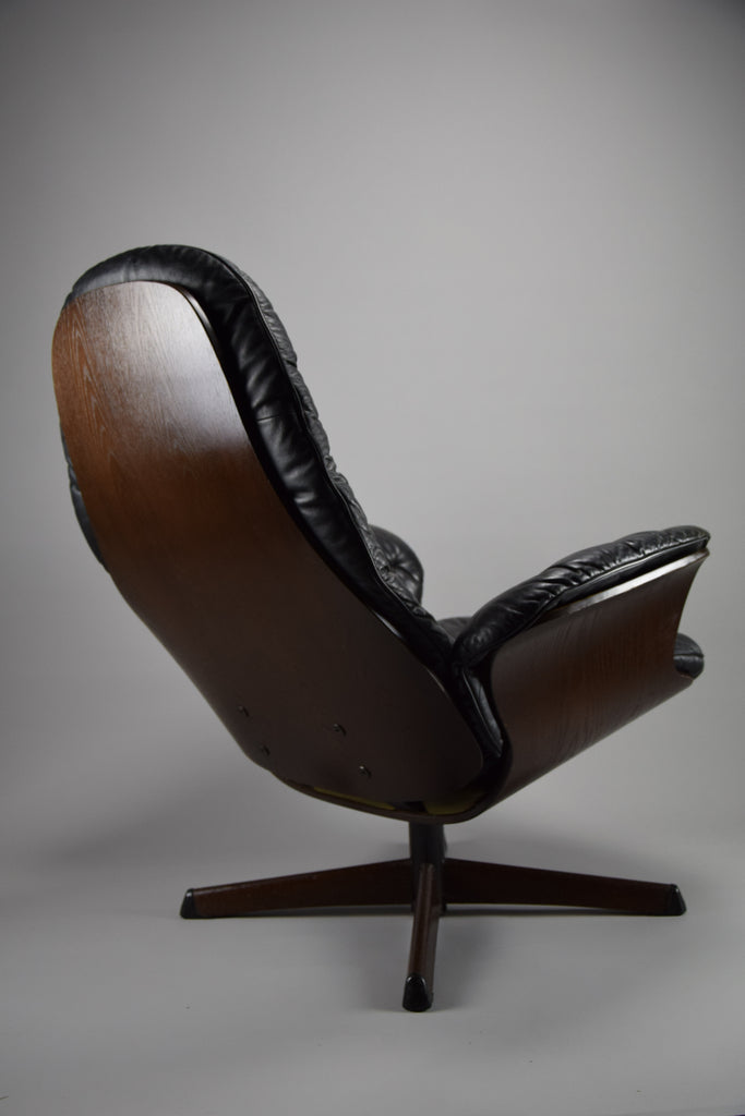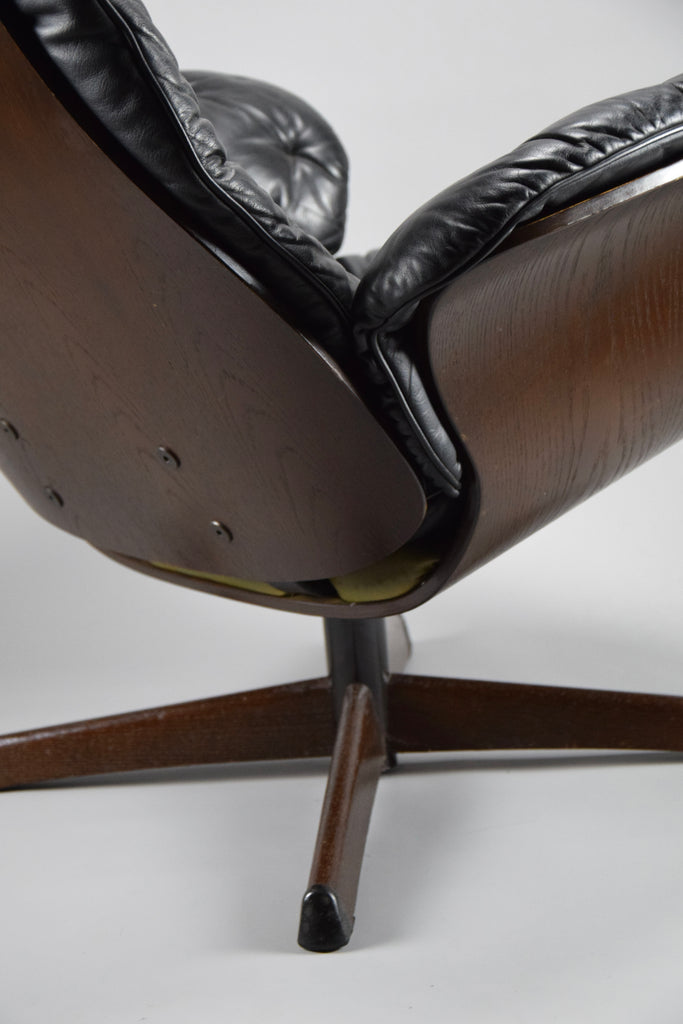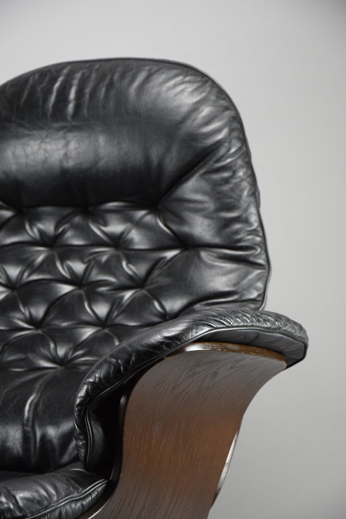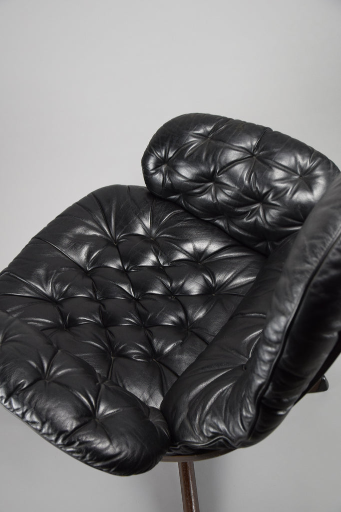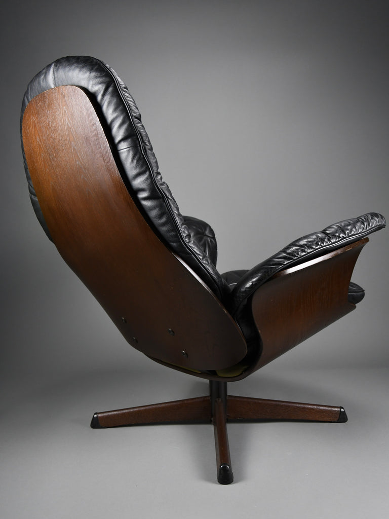 Mid-Century Modern Swedish Black Leather Swivel Lounge Chair