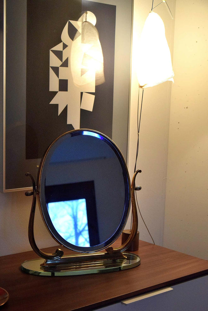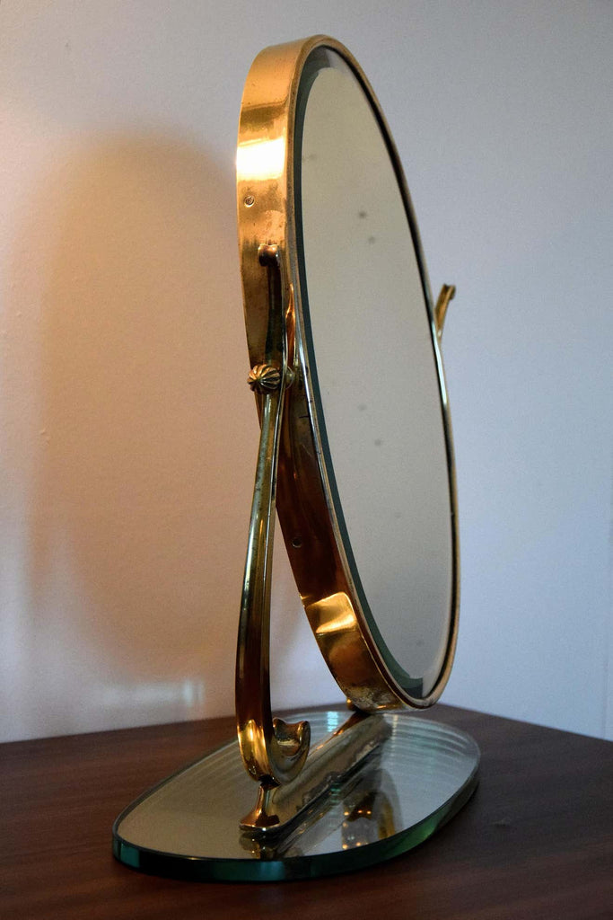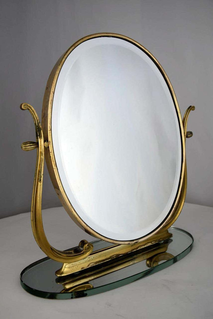 Midcentury Italian Brass Vanity or Tabletop Mirror