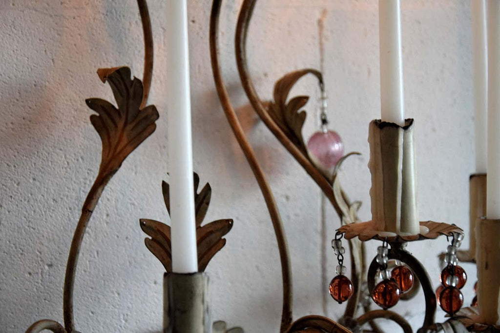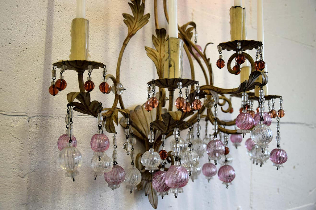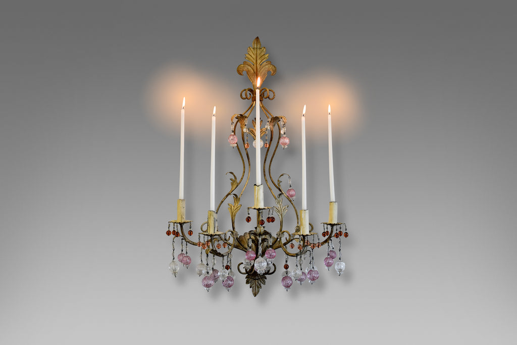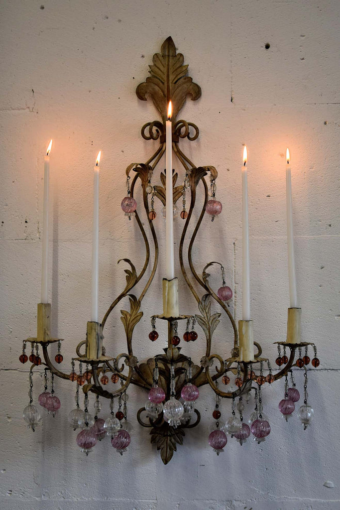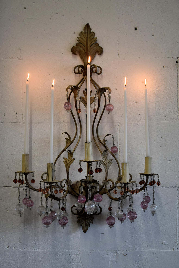 Vintage ObjectsThis stunning piece comes from my personal collection. I bought it 26 years ago while living in Milano. This gorgeous wall candle holder from the 1900’s, came from a villa directly located on Como Lake. It is actually a wall lamp which I used as candle holder. Beautiful Murano glass decorations in pink, transparant and amber. Even though there are some pieces missing, that does not distract from the uniqueness and beauty of this piece.