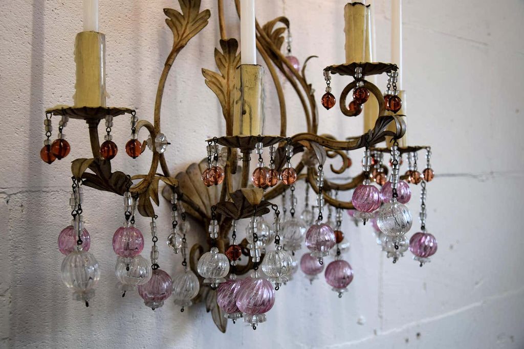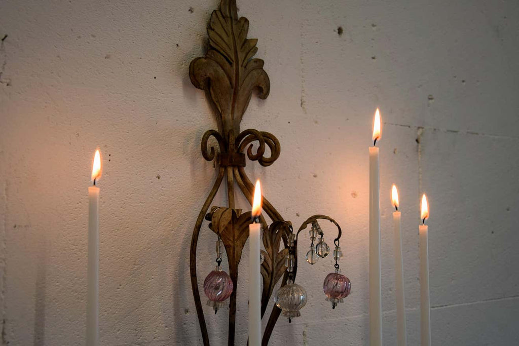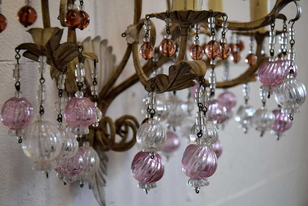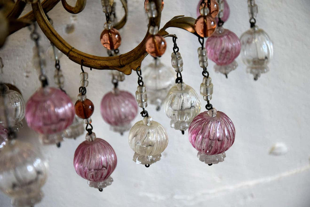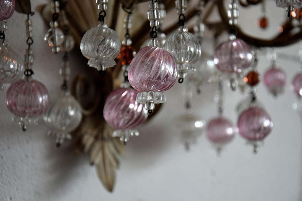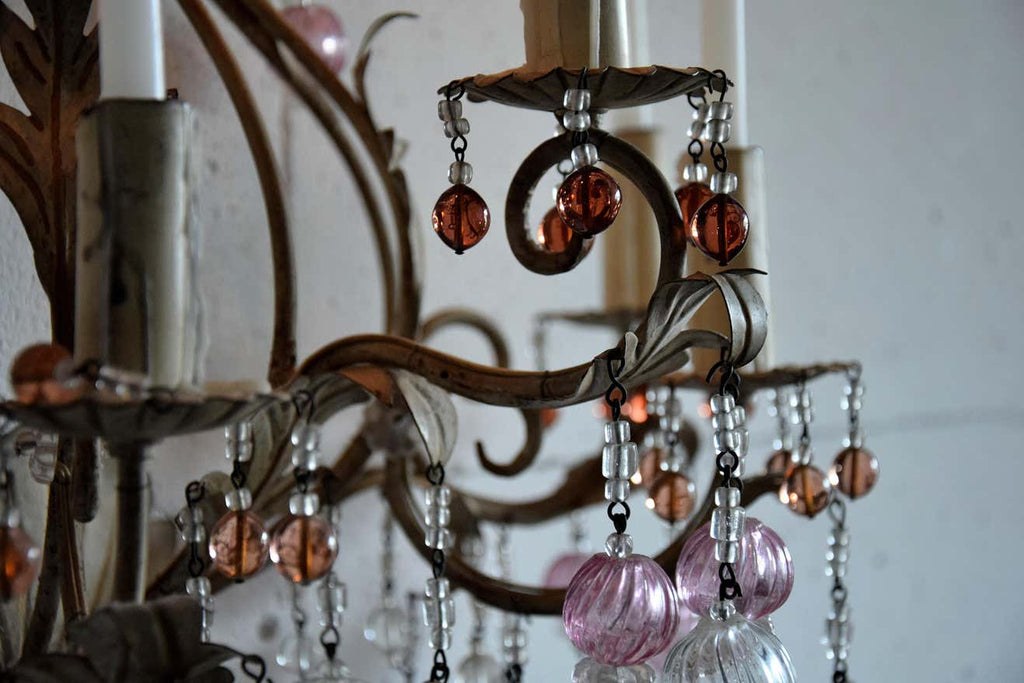 Vintage ObjectsThis stunning piece comes from my personal collection. I bought it 26 years ago while living in Milano. This gorgeous wall candle holder from the 1900’s, came from a villa directly located on Como Lake. It is actually a wall lamp which I used as candle holder. Beautiful Murano glass decorations in pink, transparant and amber. Even though there are some pieces missing, that does not distract from the uniqueness and beauty of this piece.