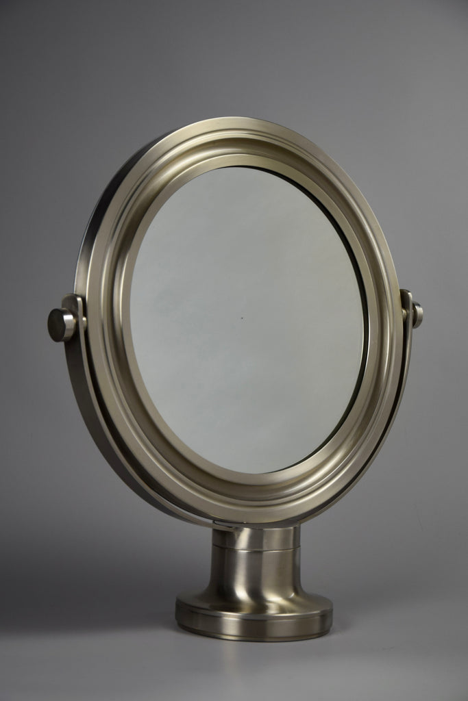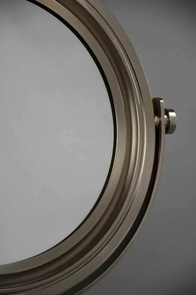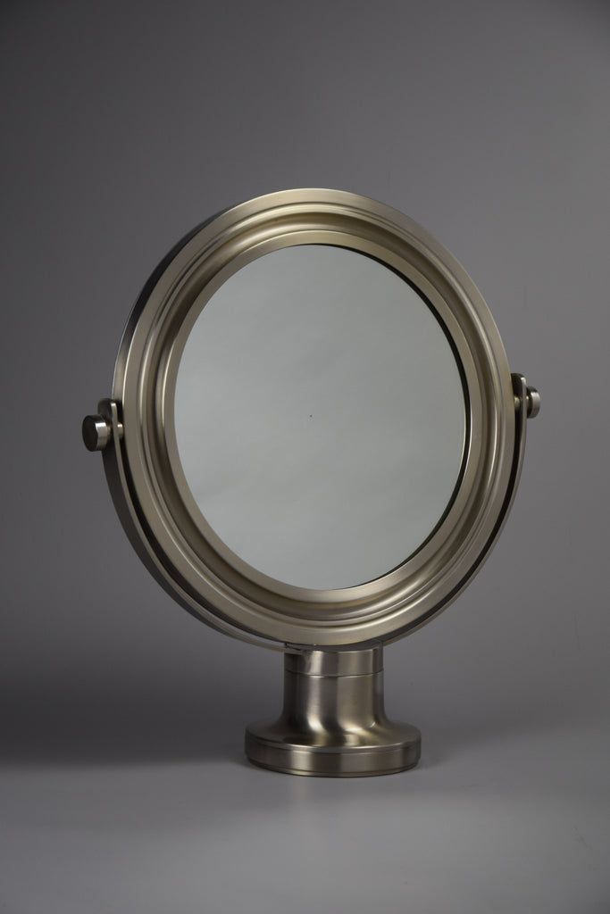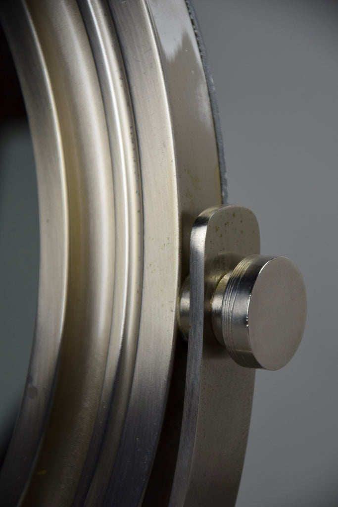 Wear consistent with age and use. The 1960 Narciso mirror shows signs of wear consistent with its age, including two minor dents in the base that contribute to its unique character and vintage appeal.