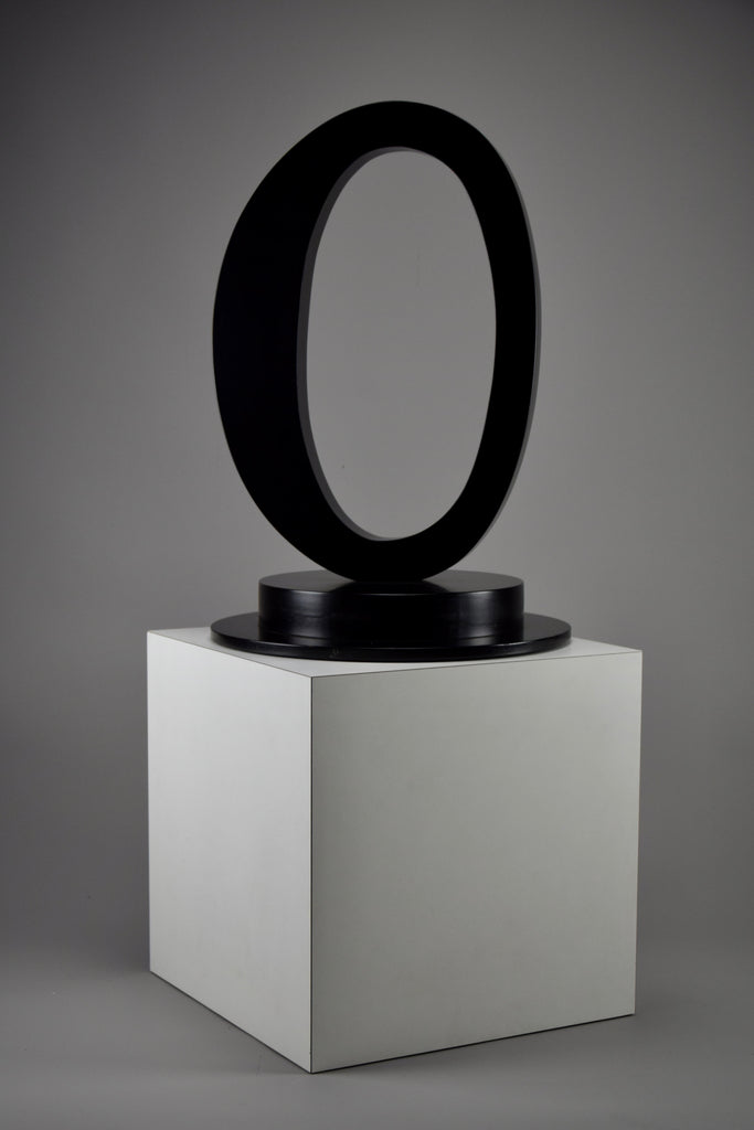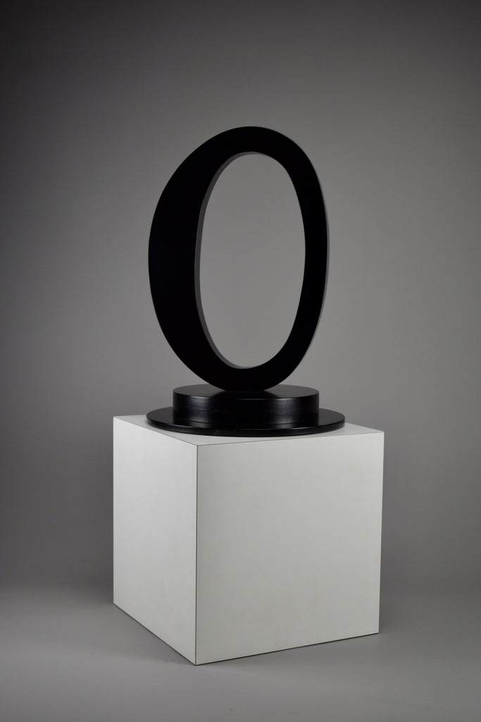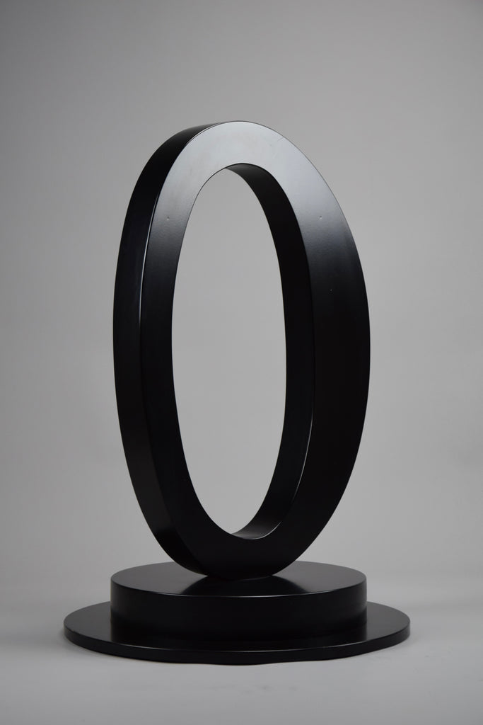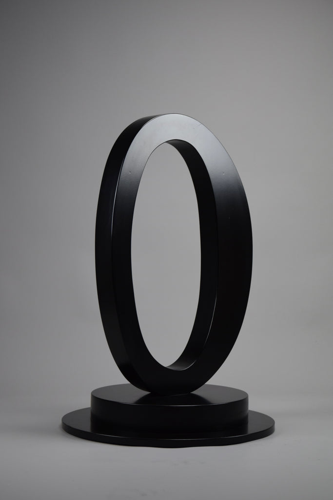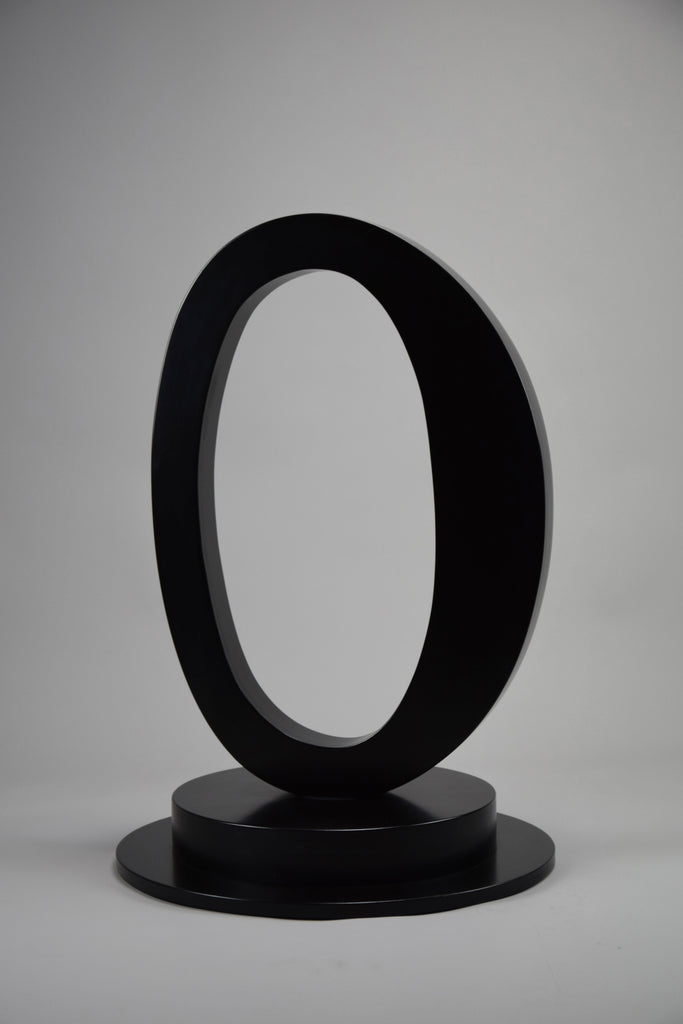 The sculpture’s smooth, oval form is both captivating and serene, drawing the viewer in with its flawless, matte black finish. The monochromatic color amplifies the sculpture’s modern aesthetic, making it a perfect fit for contemporary interiors or spaces seeking a touch of refined sophistication.