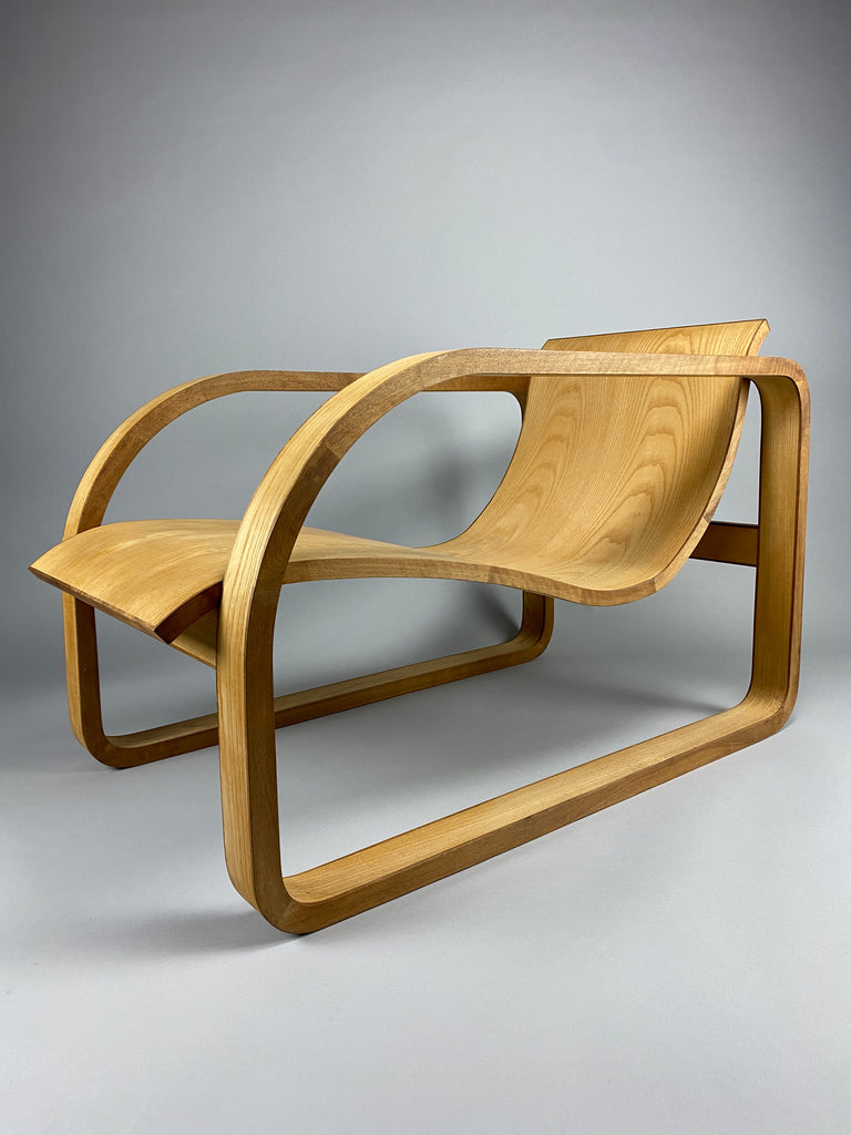 Elevate your space with a true masterpiece of design - the one-of-a-kind 1990's lounge chair. This extraordinary piece transcends the boundaries of furniture, captivating the eye with its exquisite lines and unparalleled craftsmanship.