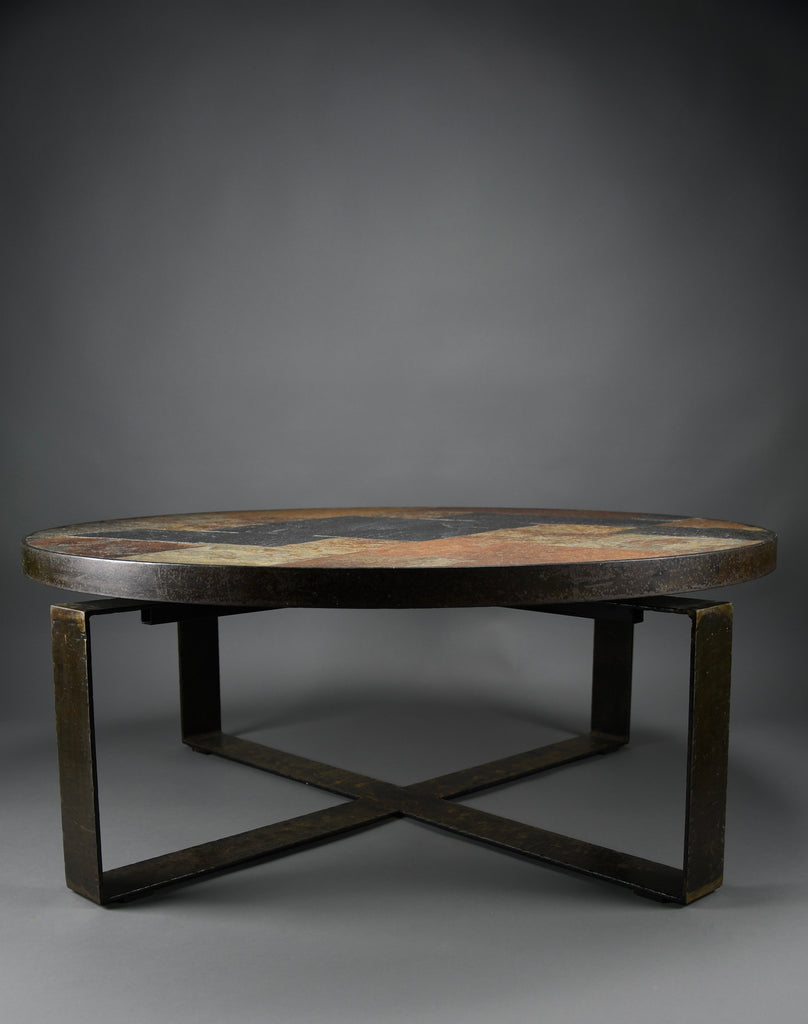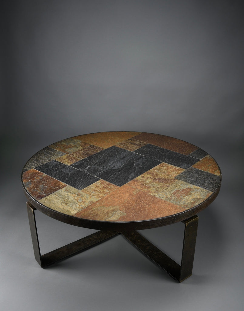 Often referred to as the “Pillarguri” model—named after the origin of the slate—the table stands as both a functional coffee table and a sculptural object. Its earthy palette and tactile surfaces make it particularly well-suited to refined modern, brutalist, and wabi-sabi interiors.