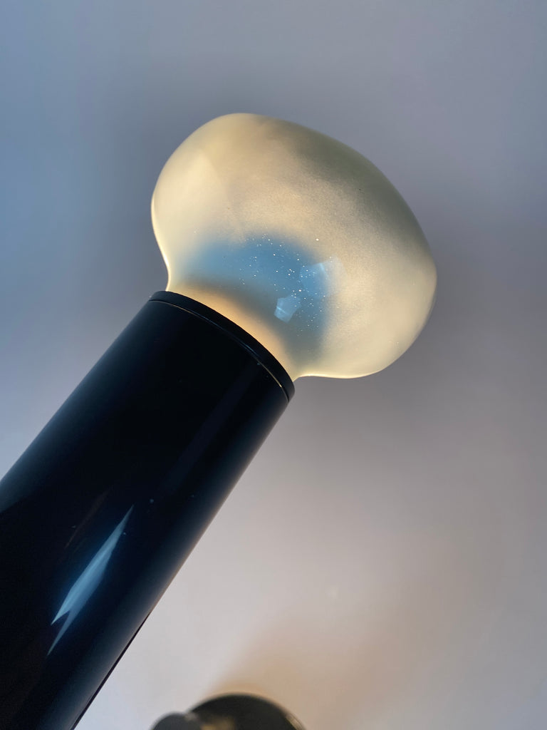Crafted to perfection, this lamp boasts a sleek black exterior that exudes sophistication and refinement, making it the perfect addition to any contemporary or retro-inspired decor. Its minimalist silhouette is a testament to the Aroldi brothers' mastery of form and function, effortlessly blending aesthetics with functionality.