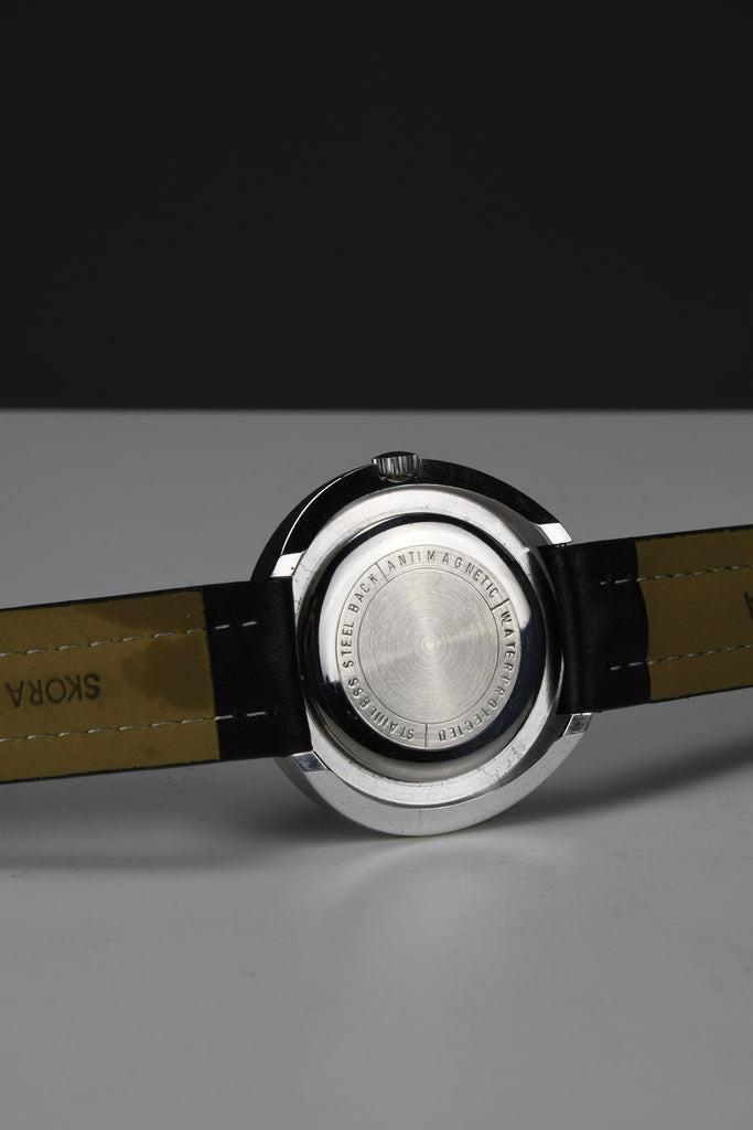 A striking piece that stands out with its minimalist retro charm and robust Swiss movement. A perfect addition for any vintage collection or a unique daily wearer for those who appreciate mechanical watches with a story.
