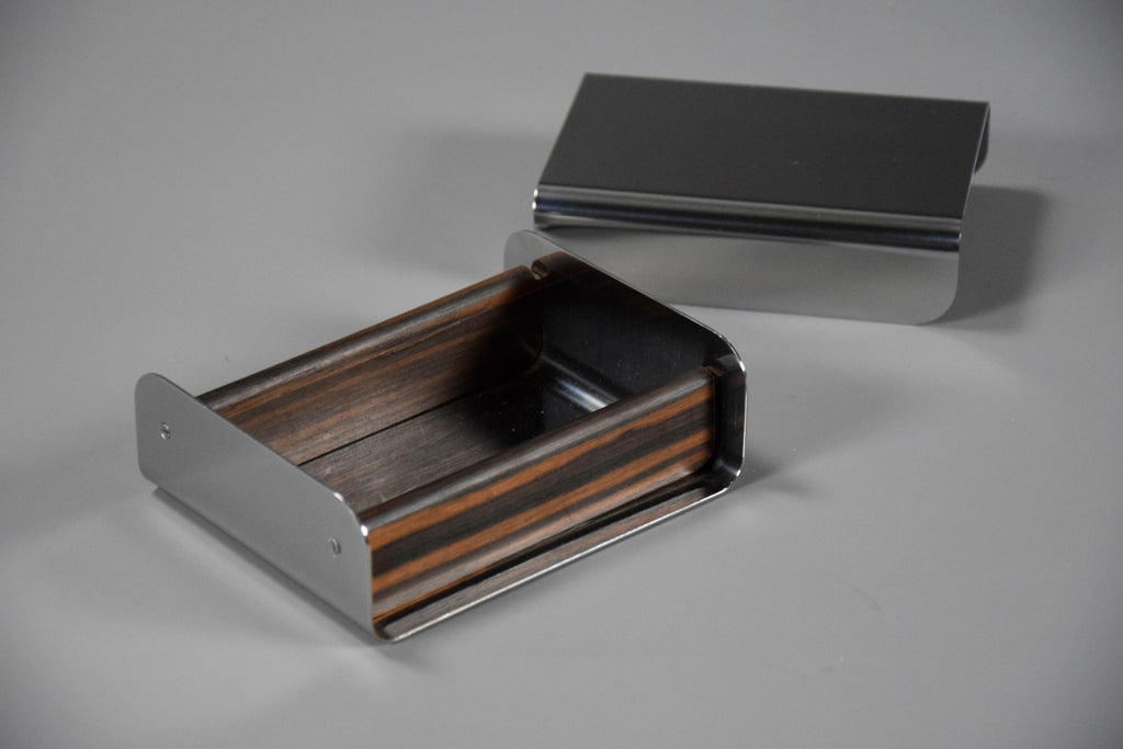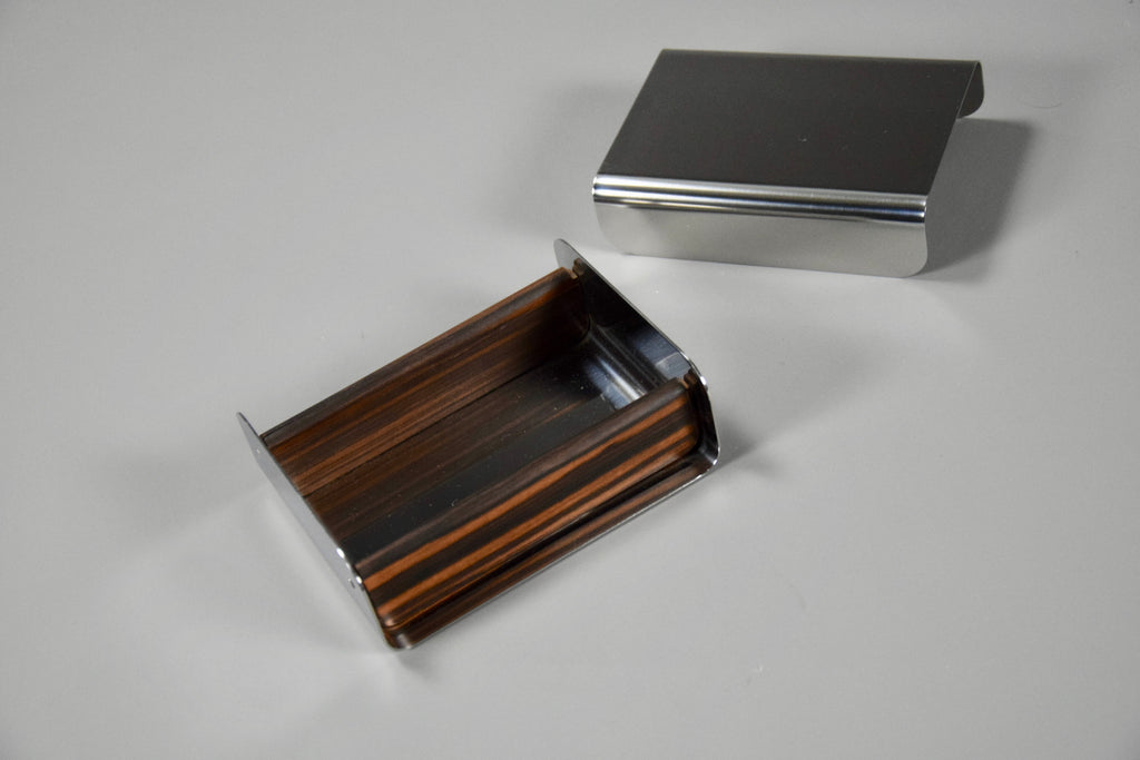 Vintage ObjectsRare New Old Stock Enzo Mari “Rodi” Box in Stainless Steel & Jatoba Wood for Danese Milano, 1960 – with Original Packaging
