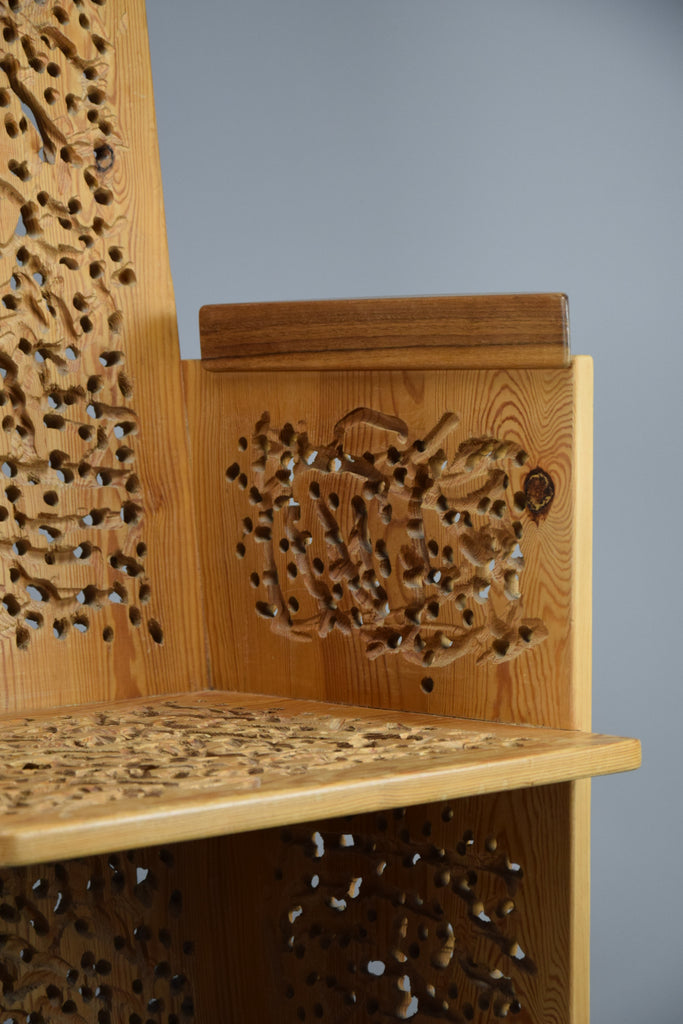 Introducing a rare, sculptural armchair meticulously handcrafted by the renowned Italian artist, Urano Palma. This extraordinary piece is not just furniture; it's a work of art that seamlessly blends functionality with artistic expression. The intricate design, carved with precision into high-quality wood, embodies Palma’s unique ability to transform the ordinary into the extraordinary. Each curve and detail tells a story, inviting the observer to appreciate the depth of creativity and the masterful craftsmanship involved.