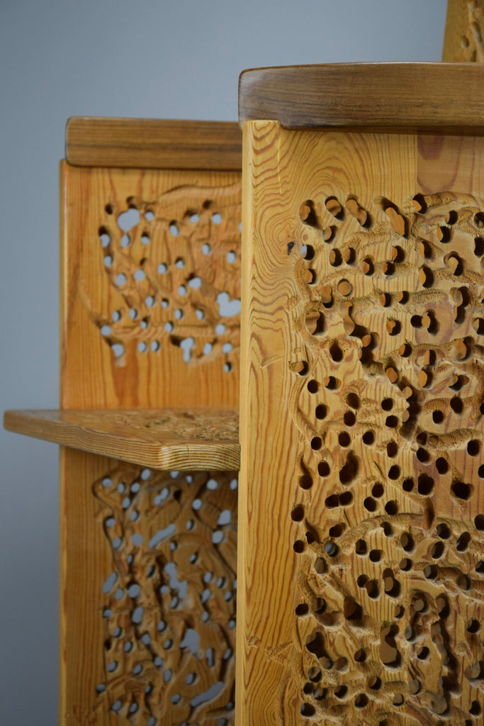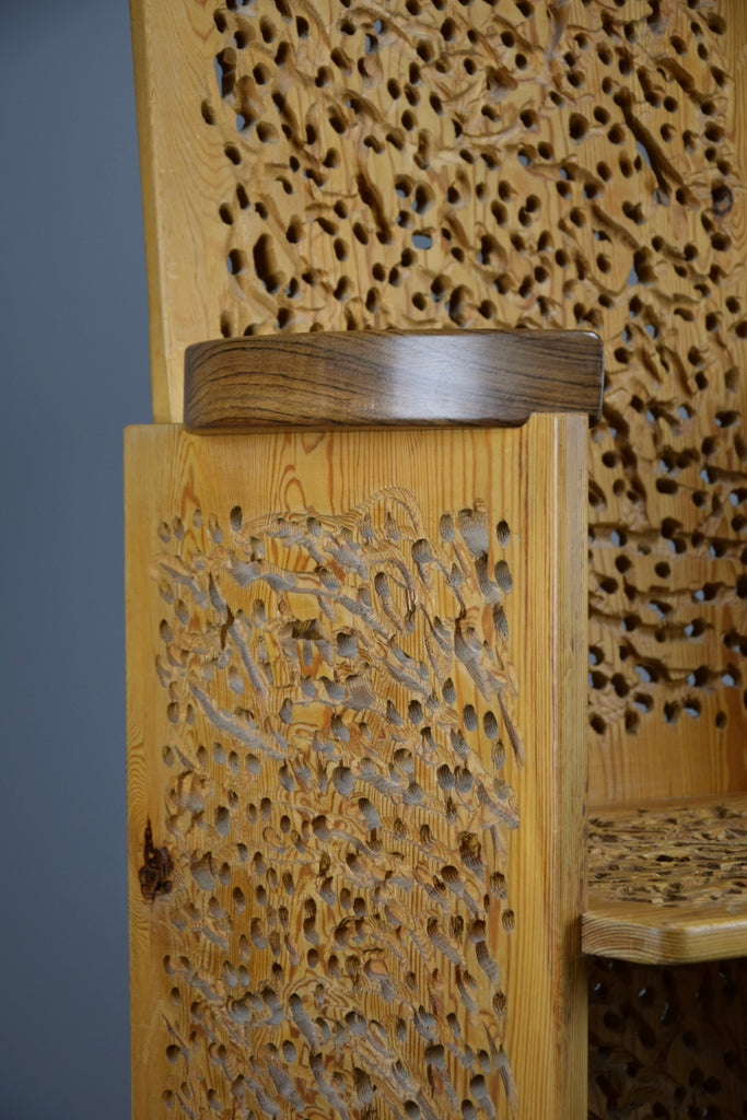 Palma’s artistry is not confined to one medium; he has worked extensively with wood, metal, and other materials, always pushing the boundaries of what is possible in sculpture. His pieces are held in high regard, featured in galleries and private collections worldwide. Each creation by Palma, much like this armchair, is a reflection of his passion for merging the traditional with the modern, creating timeless pieces that resonate with elegance and sophistication.
