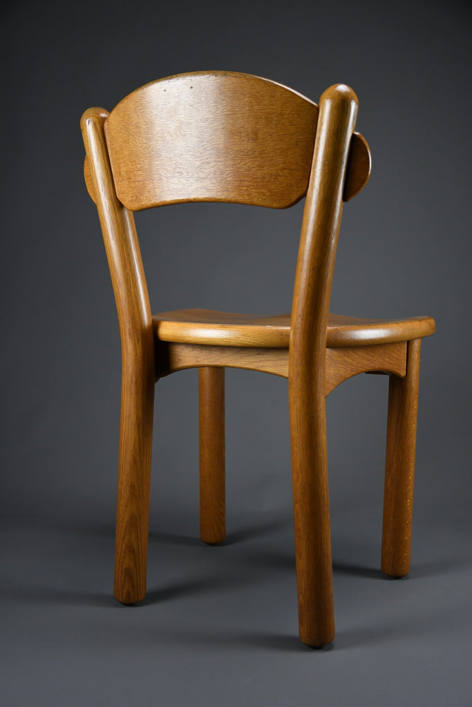 Crafted entirely from solid pine, each chair features sculpted seats and ergonomic backrests that echo nature’s curves, emphasizing comfort without sacrificing aesthetics. The warm honey tones of the wood, combined with their tactile presence, lend an inviting and grounded atmosphere to any dining space.