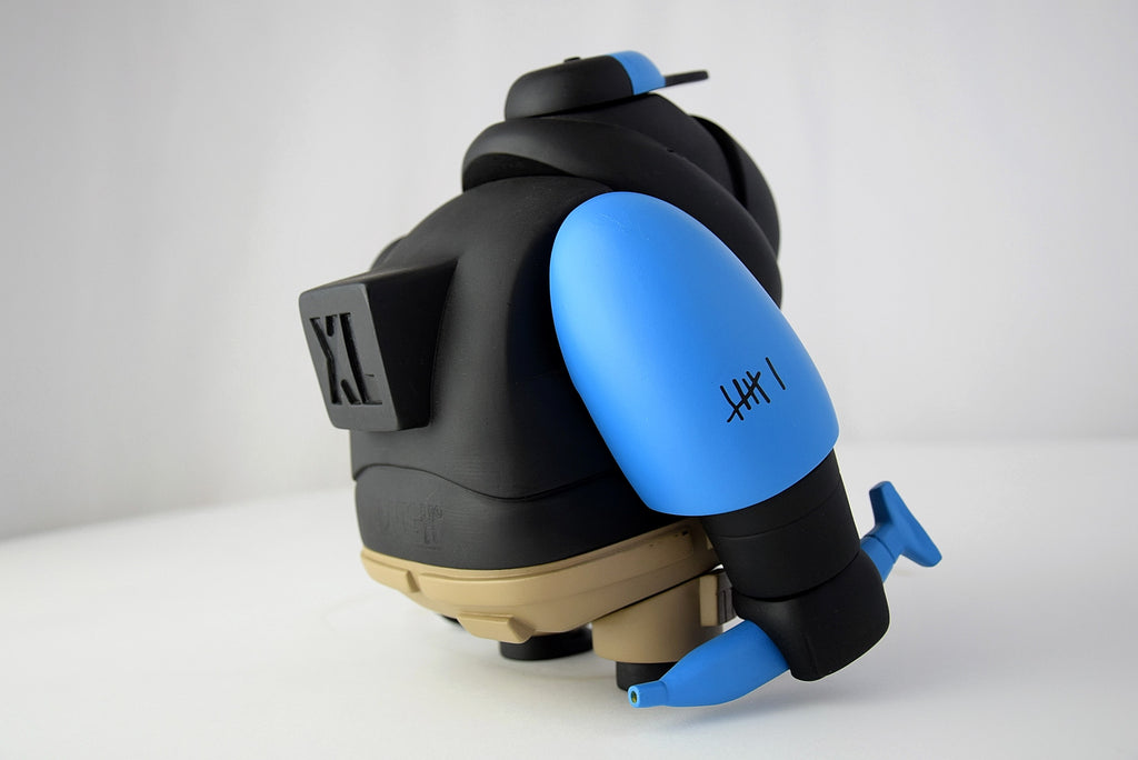 X-Large measures width 19 x length 19 x depth 16 cm. The designer toy weighs 580 grams. This rare piece comes with it's original box which measures width 31 x length 41 x depth 16 cm.. All in great condition. YX-Large has never been exposed, always kept in storage, out of sunlight in a smoke free environment.