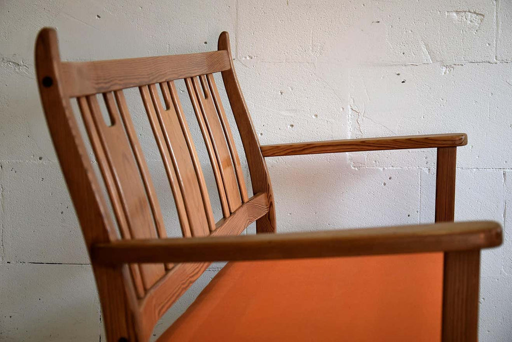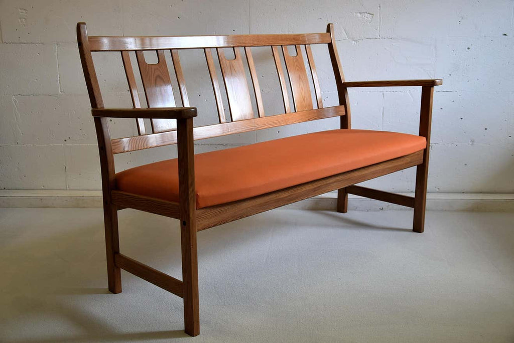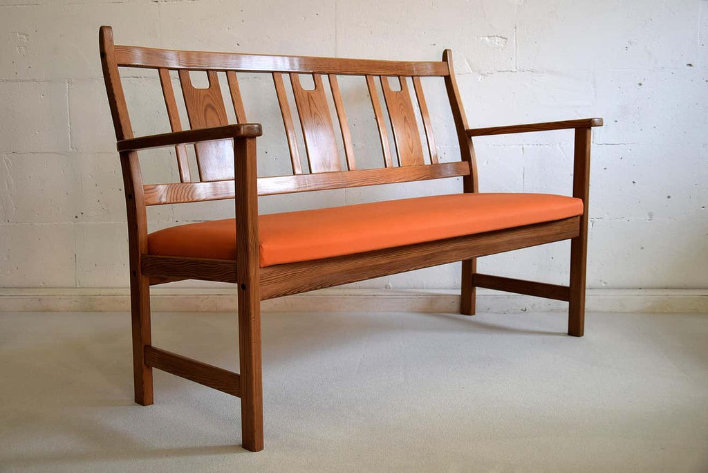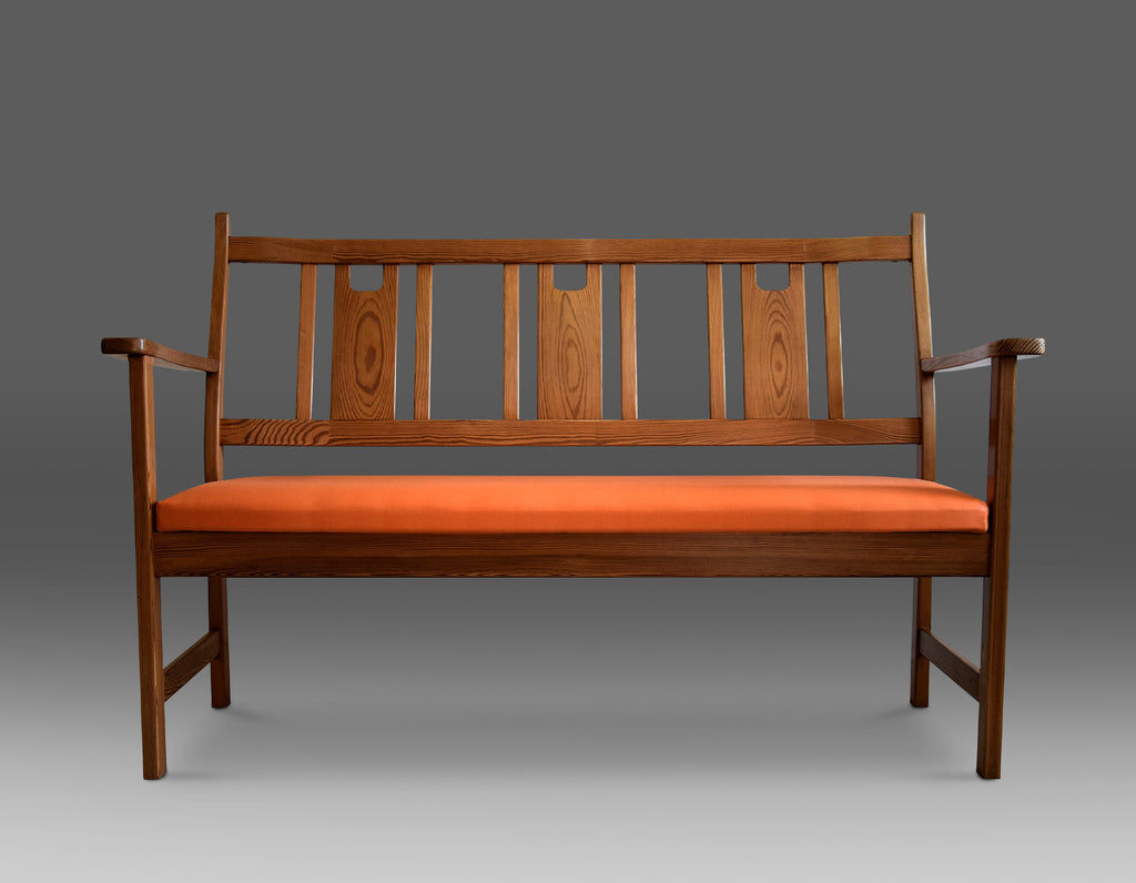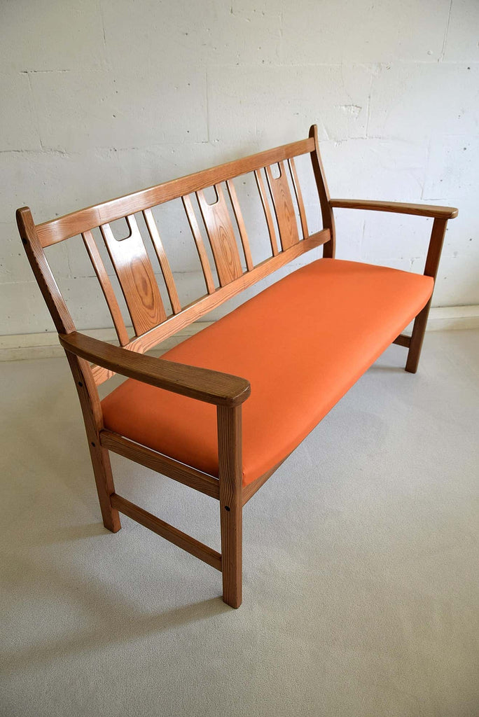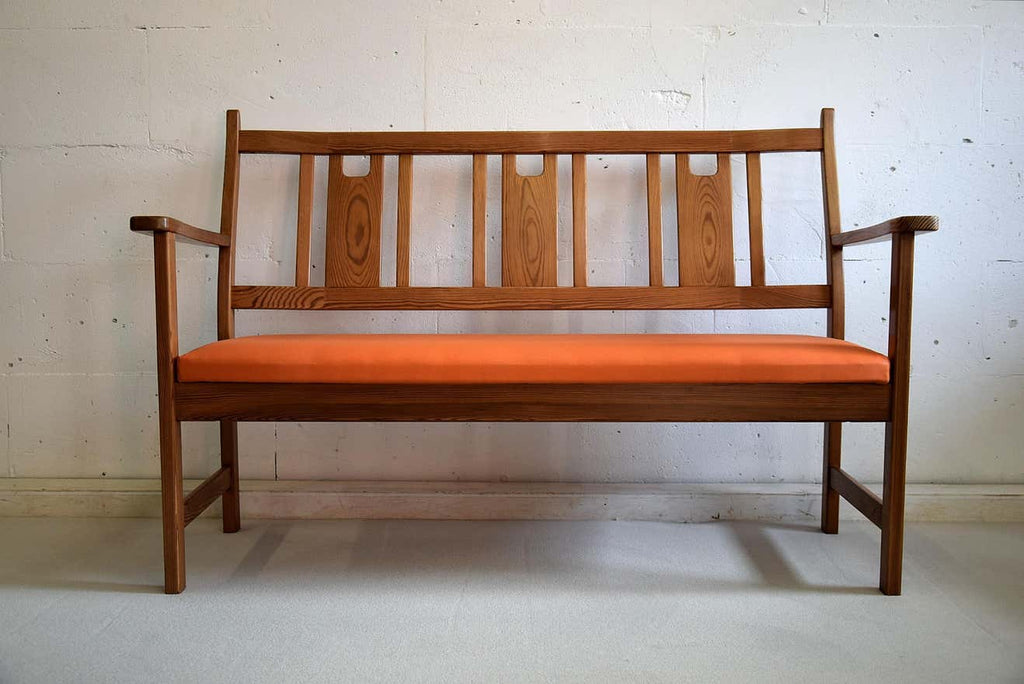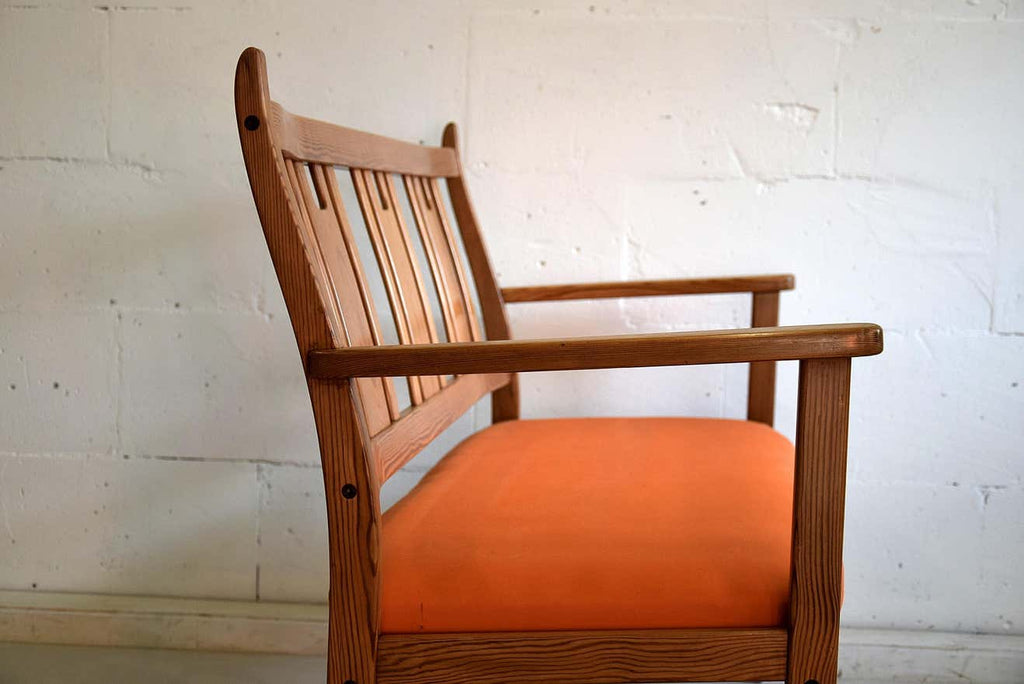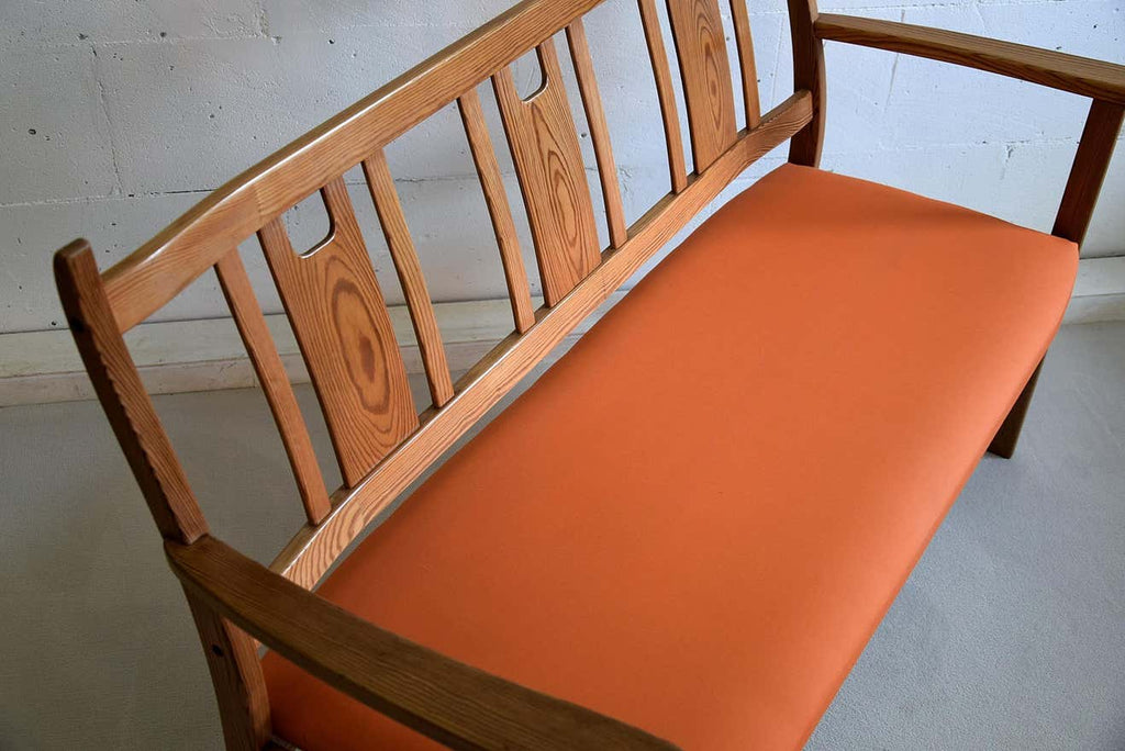 Yngve Ekström Orange and Brown Pine Two-Seat Bench