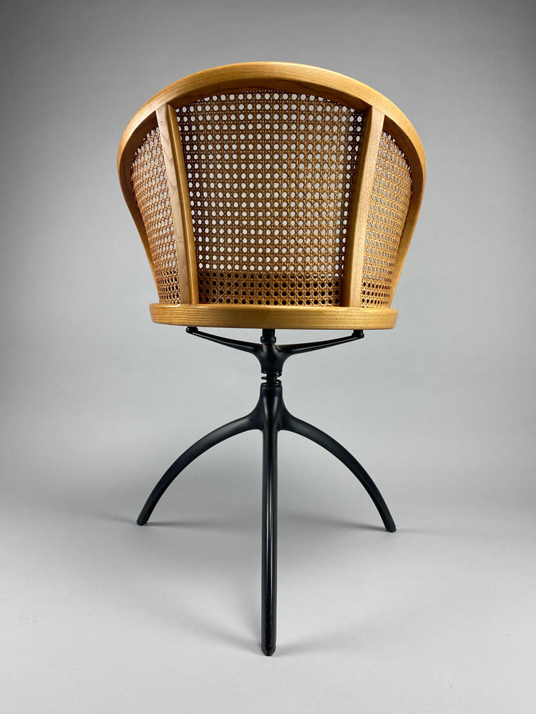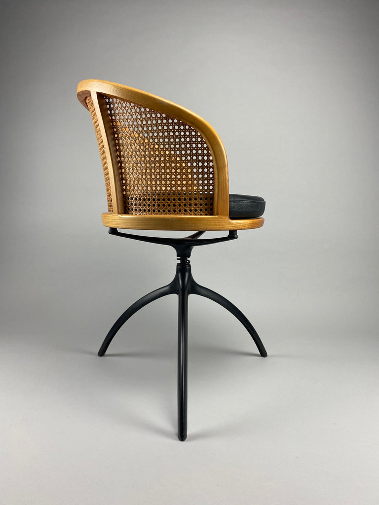 Designed for ultimate versatility, the 'Young Lady Chair' features a swivel base that allows for effortless movement and flexibility. Whether placed in a living room, office, or study, this chair effortlessly enhances any space with its understated elegance and timeless appeal.