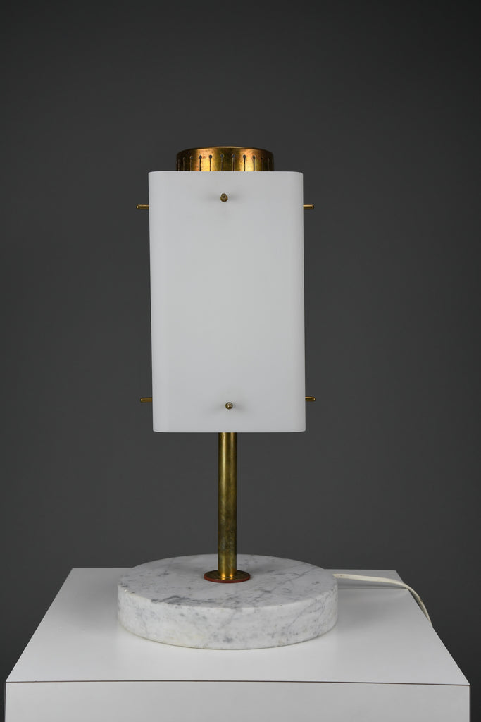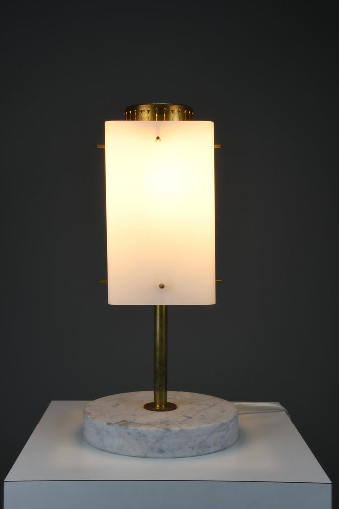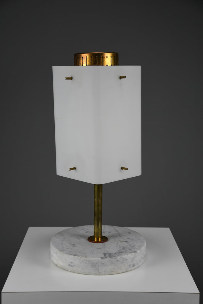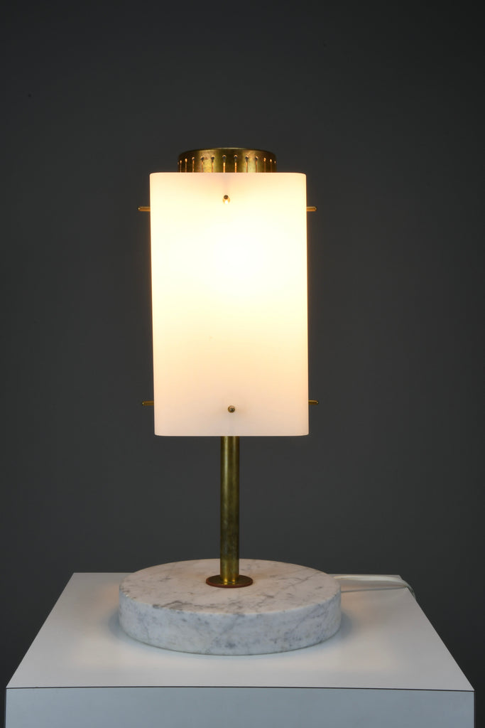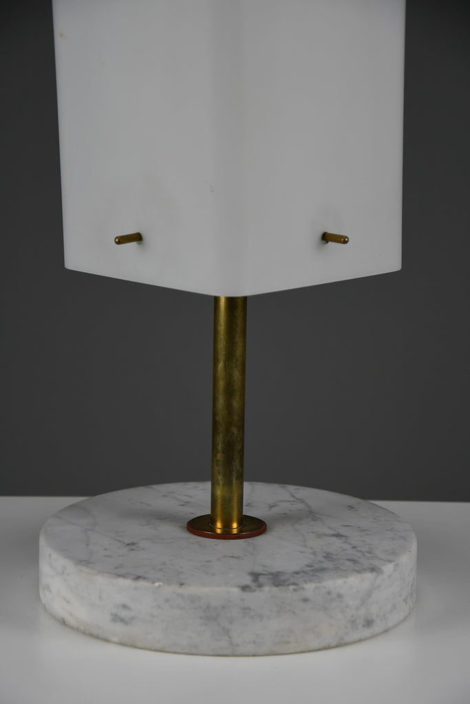 1960s Glass, Brass & Carrara Marble Table Lamp Attributed to Stilnovo