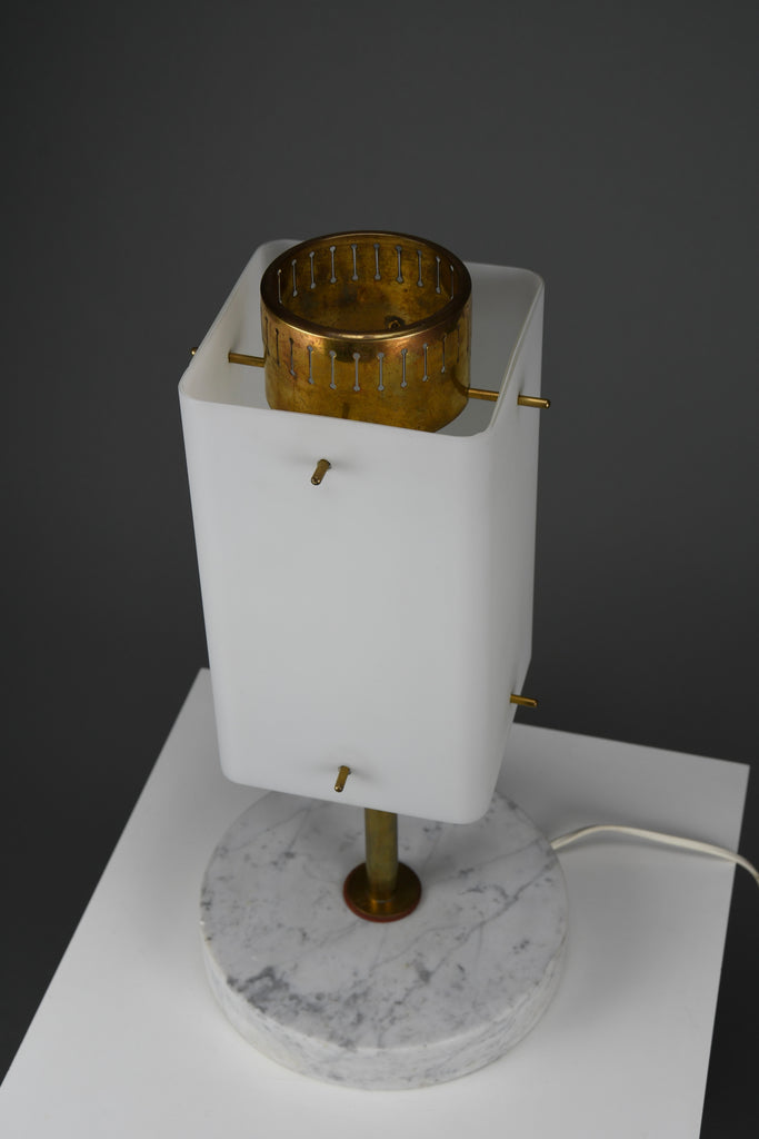 Vintage Objects1960s Glass, Brass & Carrara Marble Table Lamp Attributed to Stilnovo