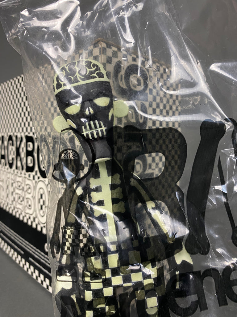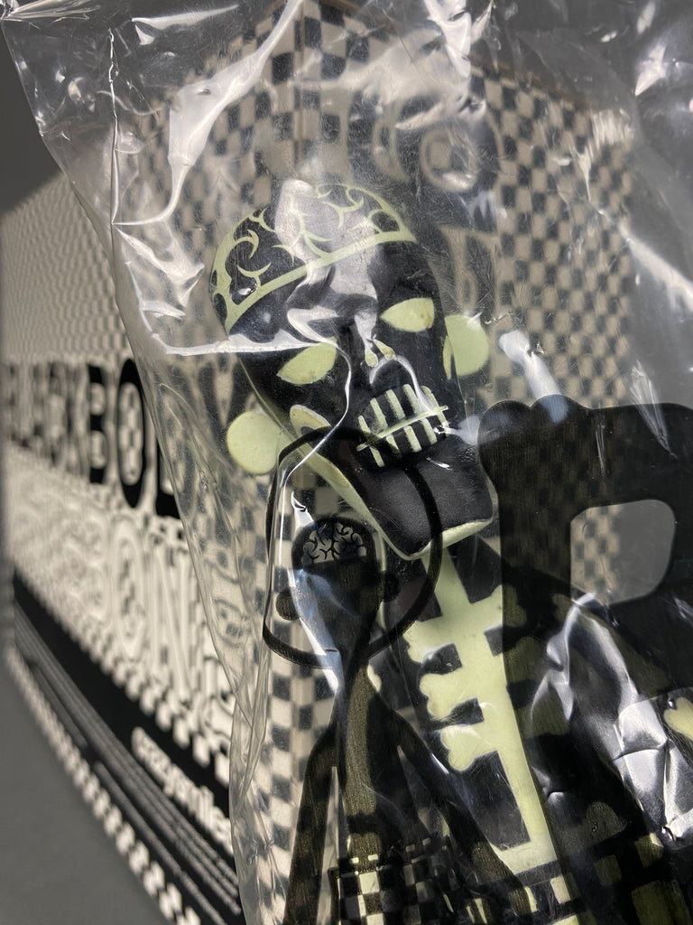 GLOW IN THE DARK BLACK BODY WHITE BONE 2006 DESIGNER TOY BY MICHAEL LAU