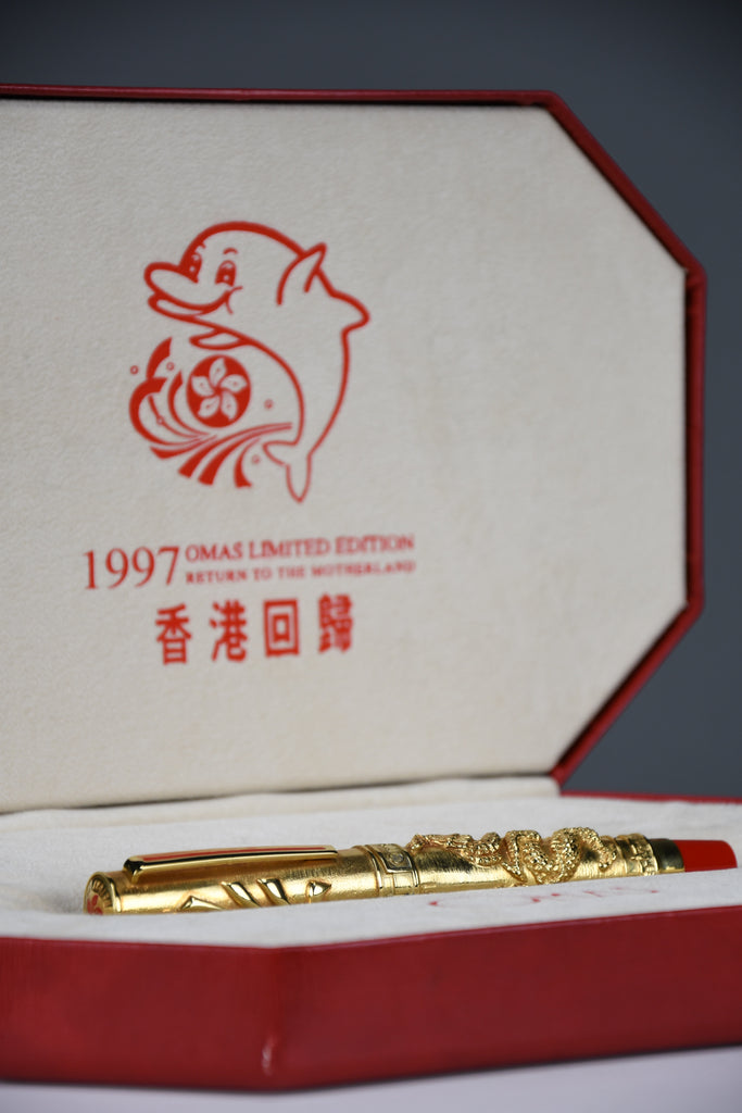 A rare and historically weighted masterpiece — this 1997 OMAS Return to the Motherland fountain pen was created to honor the handover of Hong Kong from British to Chinese governance, marking one of the most significant geopolitical transitions of the 20th century. Only 200 examples were produced worldwide, each individually numbered. This piece is No. 063/200, preserved in mint, uninked condition, and complete with every original component.
