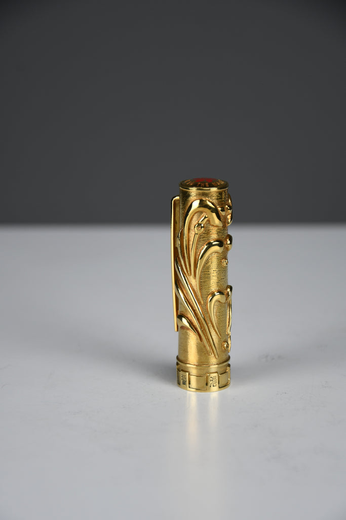 Crafted entirely in 18 karat gold and weighing an impressive 123 grams, the pen is sculpted in deep high-relief — a tactile narrative rendered directly into precious metal.