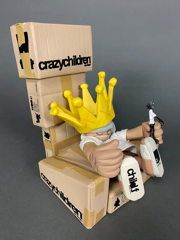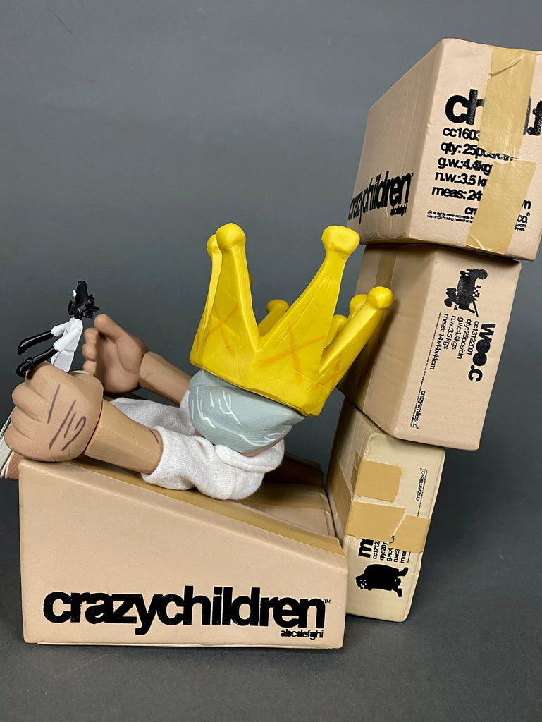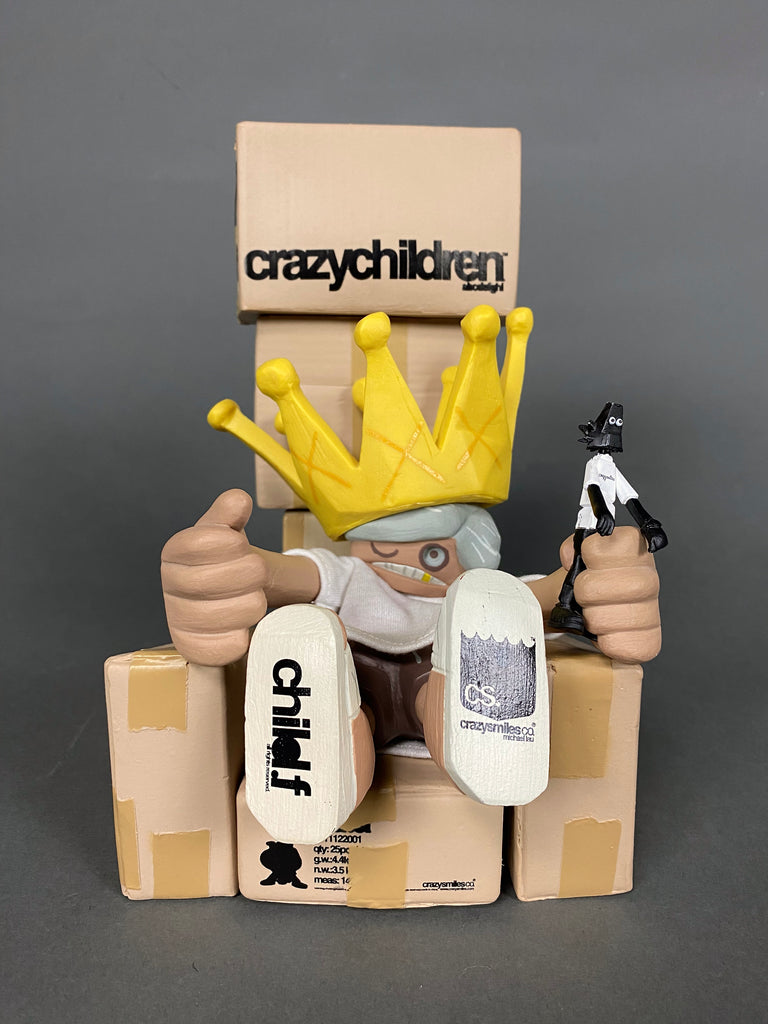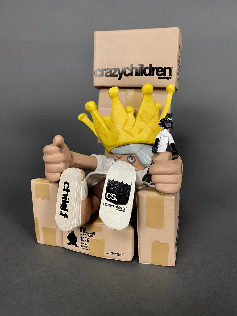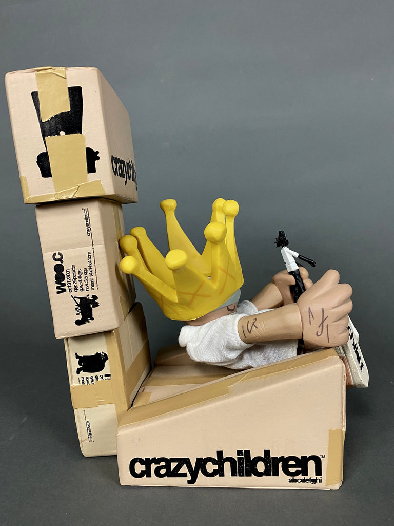 Child F aka KING limited edition from the Crazy Children series 2002 Art Toy by Michael Lau and produced by Crazysmiles. This rare piece comes with it's original box, crown and mini Michael Lau. All in great condition. King has never been exposed, always kept in storage, out of sunlight in a smoke free environment.