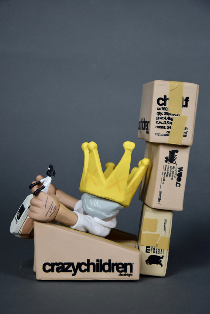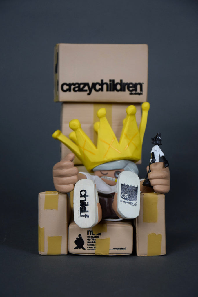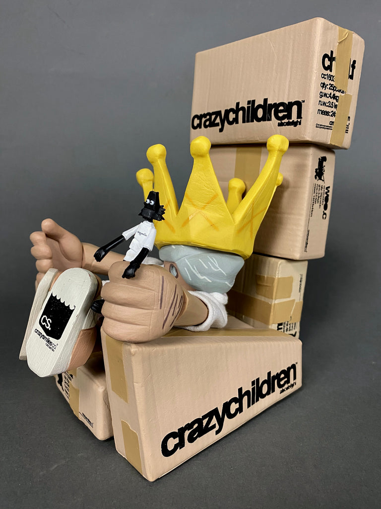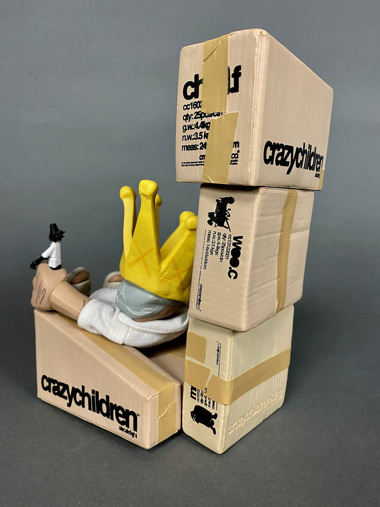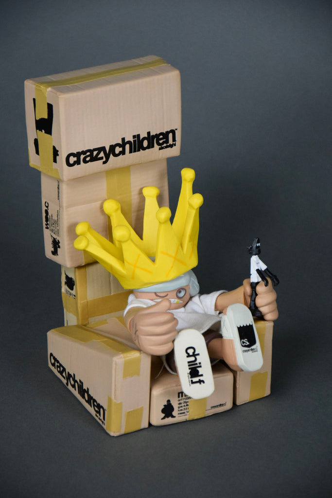 Child F aka KING limited edition from the Crazy Children series 2002 Art Toy by Michael Lau and produced by Crazysmiles. This rare piece comes with it's original box, crown and mini Michael Lau. All in great condition. King has never been exposed, always kept in storage, out of sunlight in a smoke free environment.