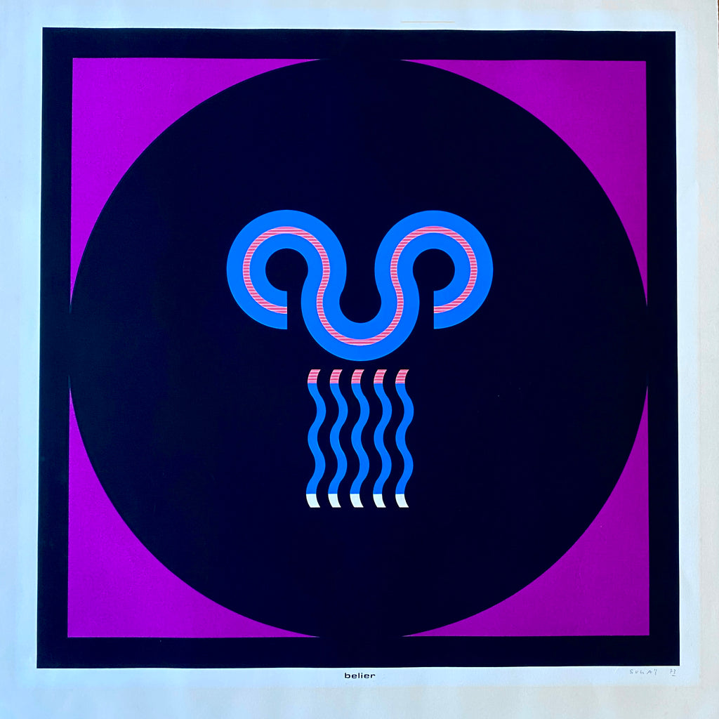 Stunning 1973 artist proof zodiac sign Aries / Belier silkscreen by Kumi Sugaï. Number IV of X. Signed and numbered by the artist in pencil. Slight discoloration around the border which does not affect the print and becomes invisible when framed with a passe-partout.